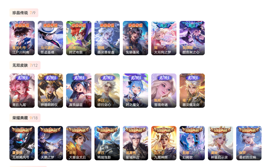 女号V10号:不禁言622皮肤9典藏7无双7珍品107传说丨大耳狗之梦酷洛米柯南基德青丘雪镜奇遇真我