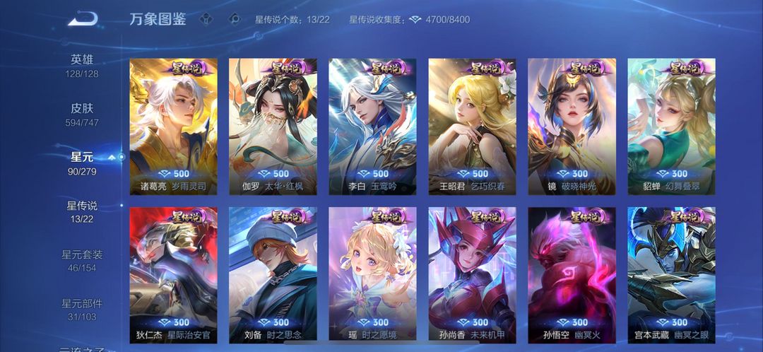 极品女号✨历史小国标甄姬王昭君后裔✨金标中路分路段✨10水6无双8珍品95传说✨13星元多天幕