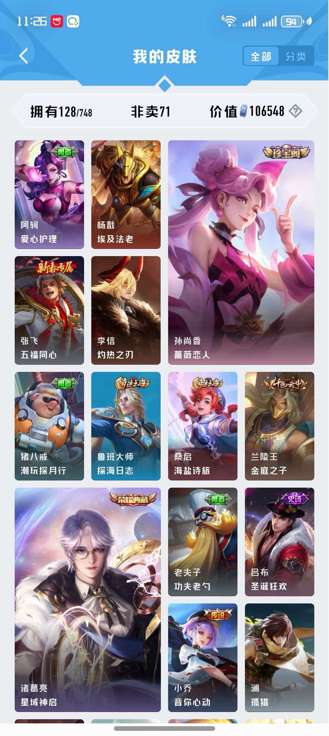 诸葛亮星域神启+孙悟空地狱火+孙尚香蔷薇恋人+末日机甲+五虎白羊座时雨天司+凤求凰