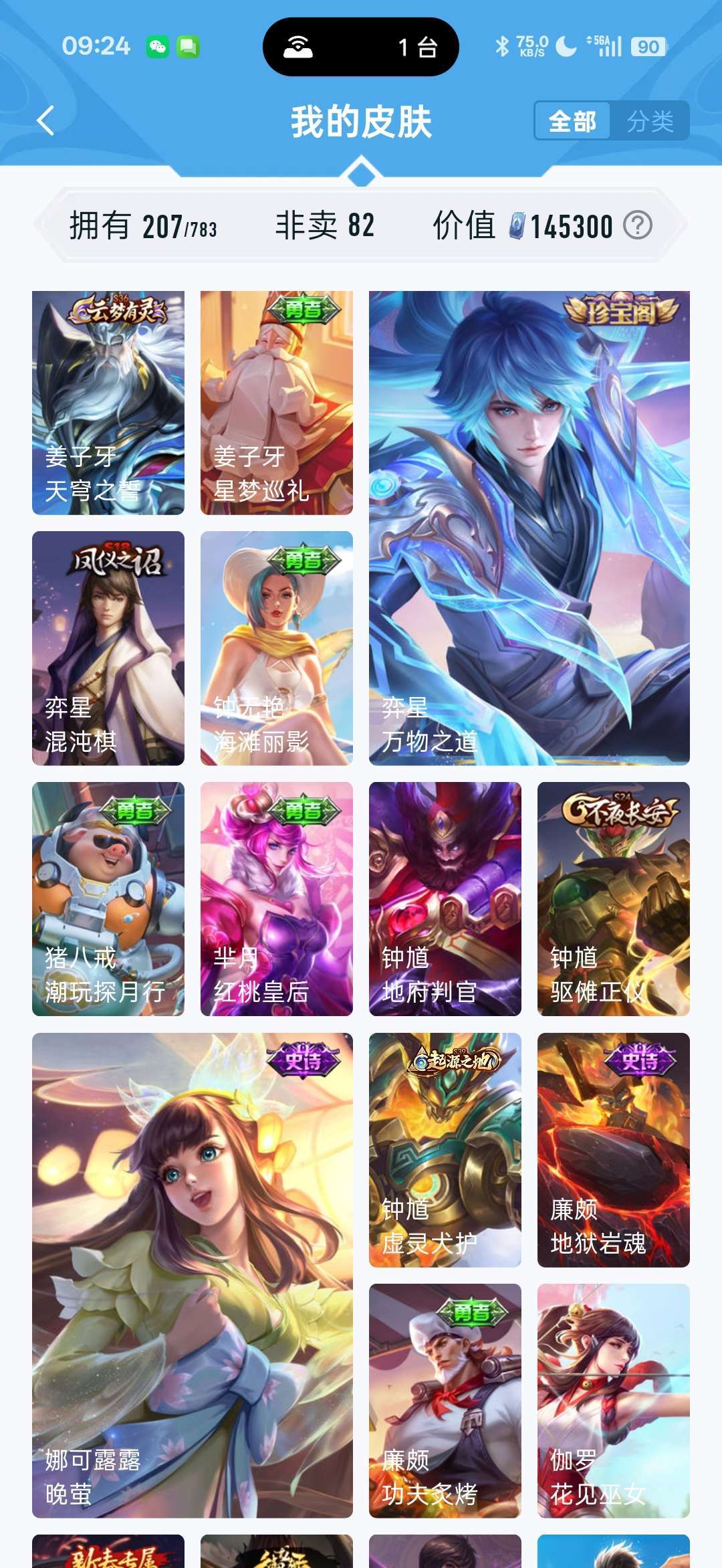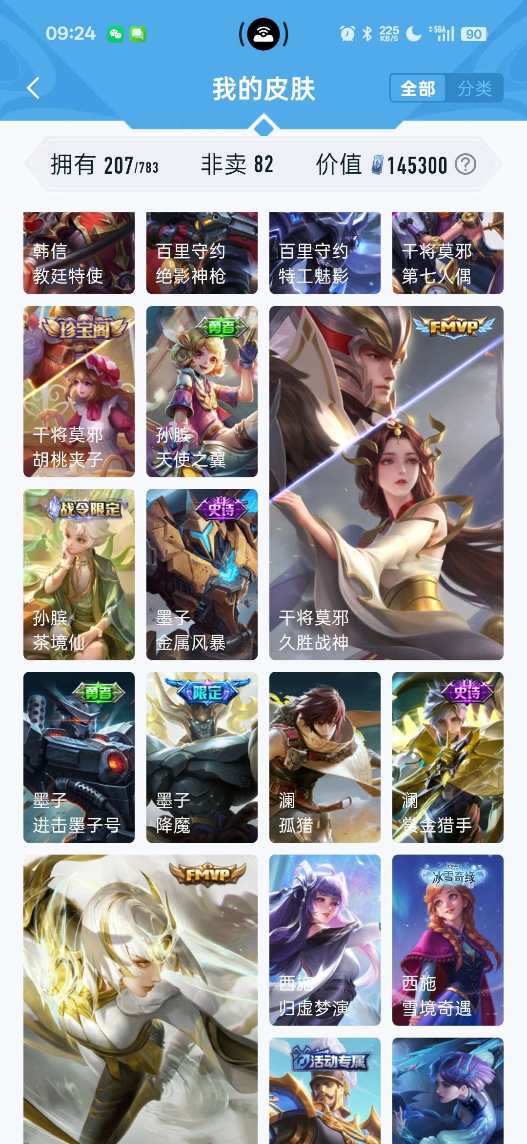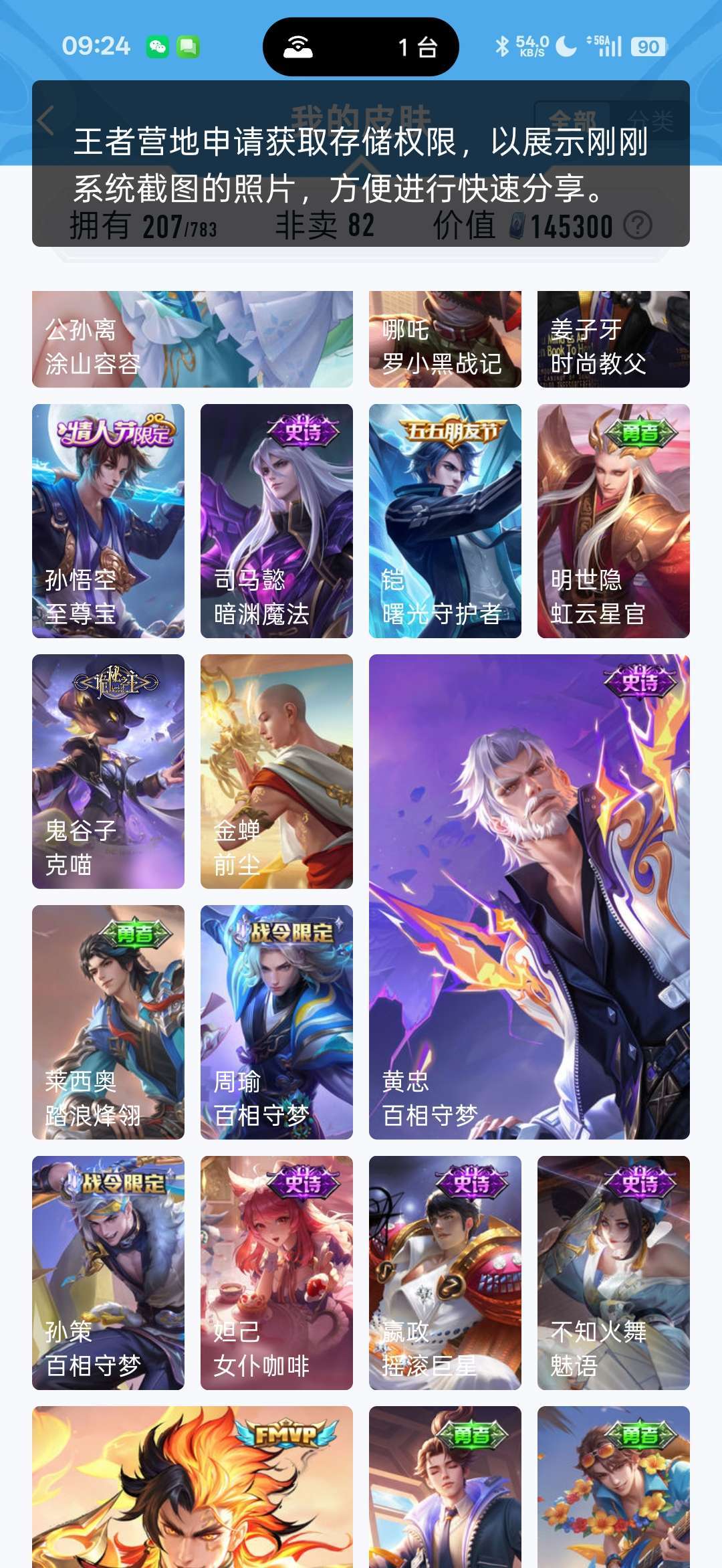 一个典藏,镜,fmvp至尊宝,美猴王,有7个传说,李信的,马超的,干将的,喜欢的可以租着体验下
