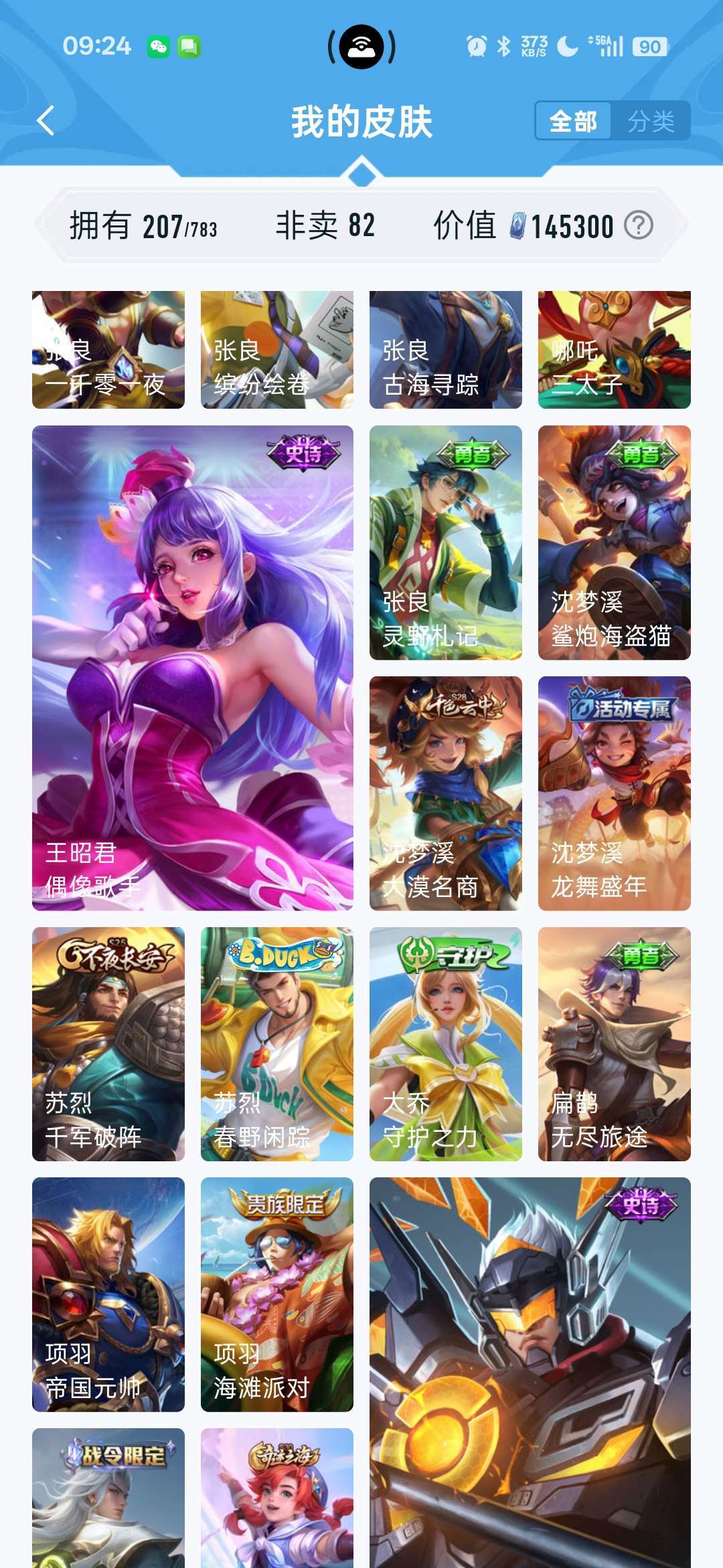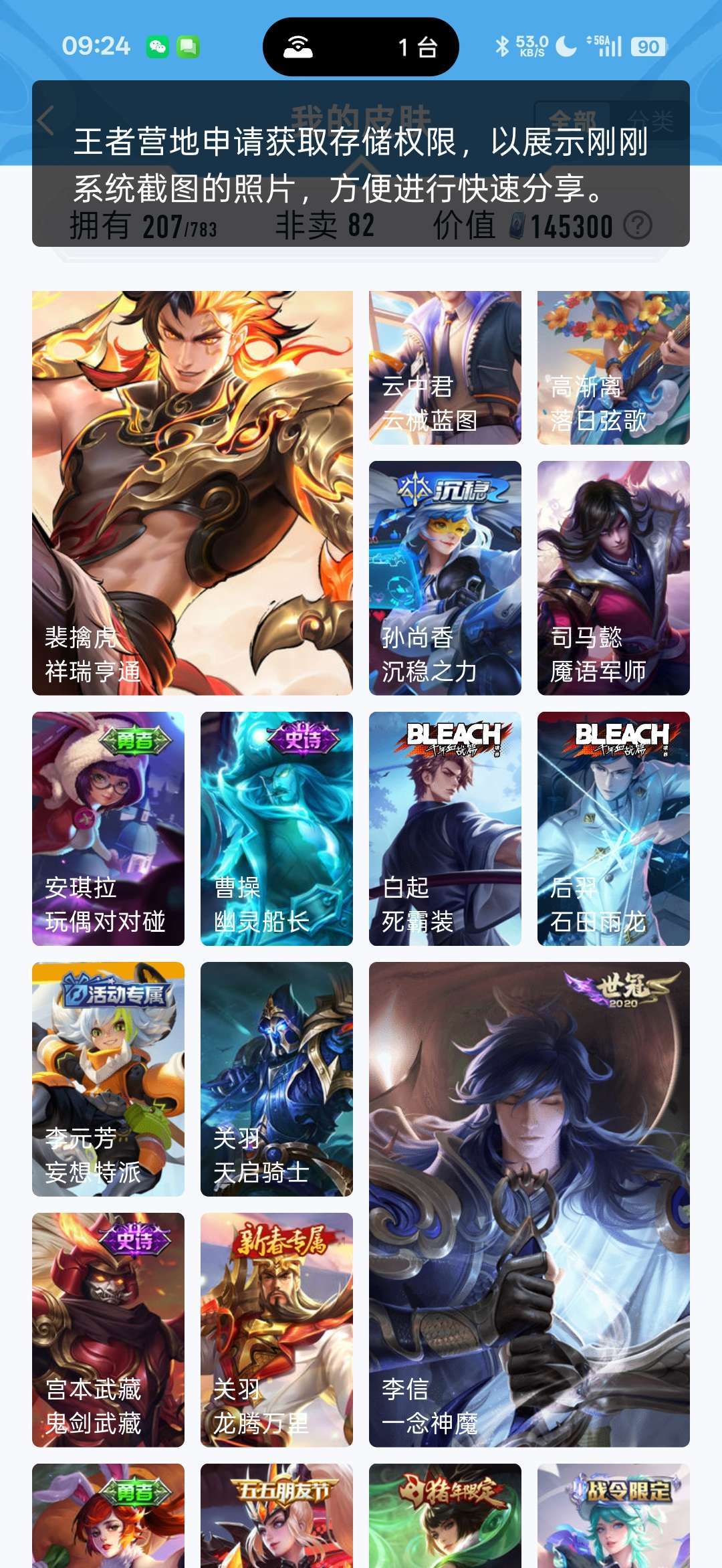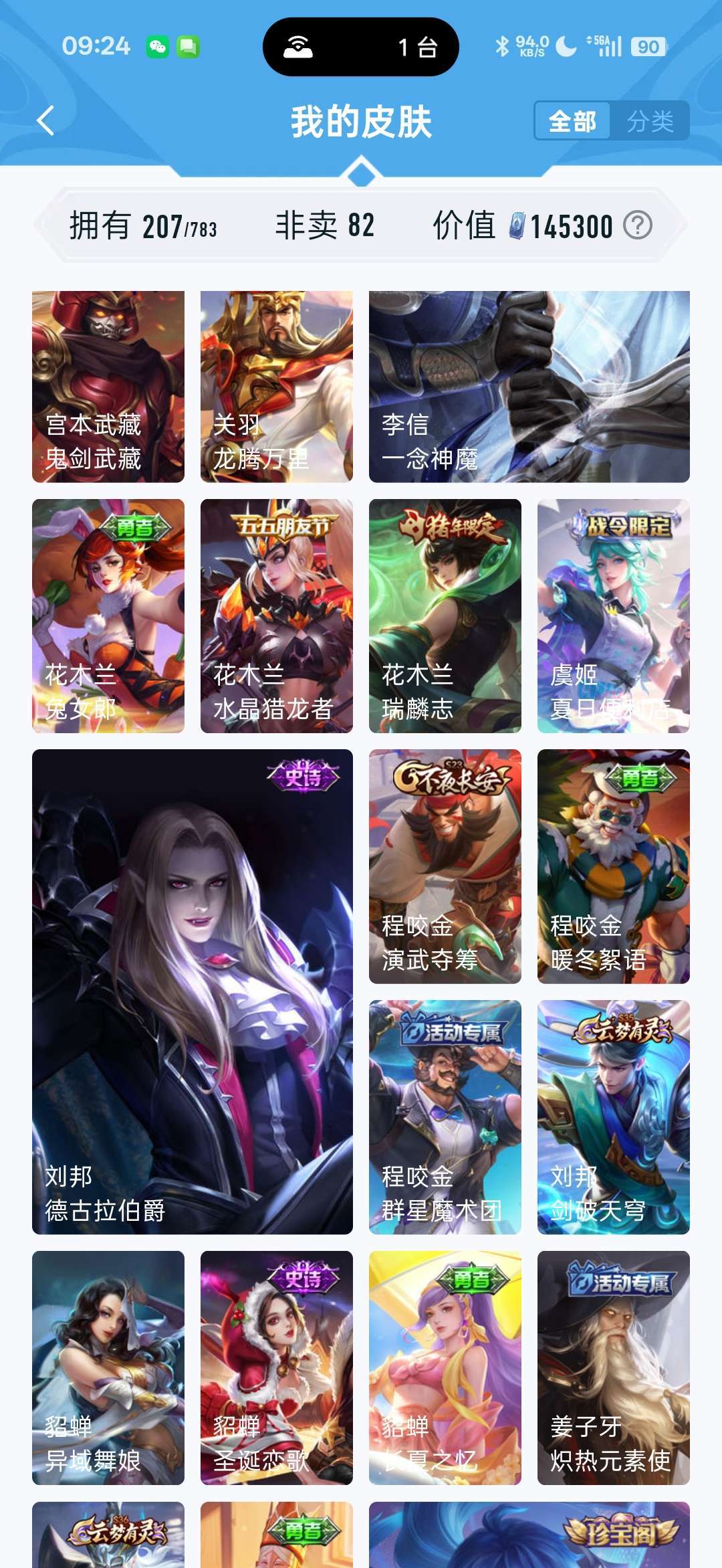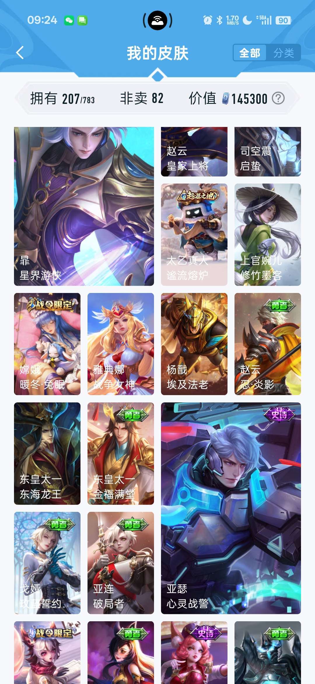 一个典藏,镜,fmvp至尊宝,美猴王,有7个传说,李信的,马超的,干将的,喜欢的可以租着体验下