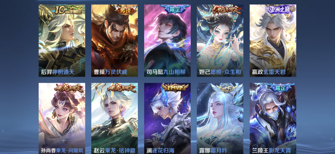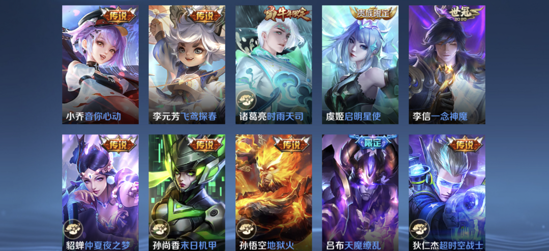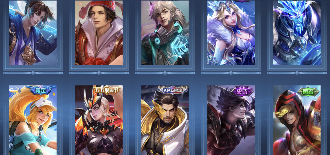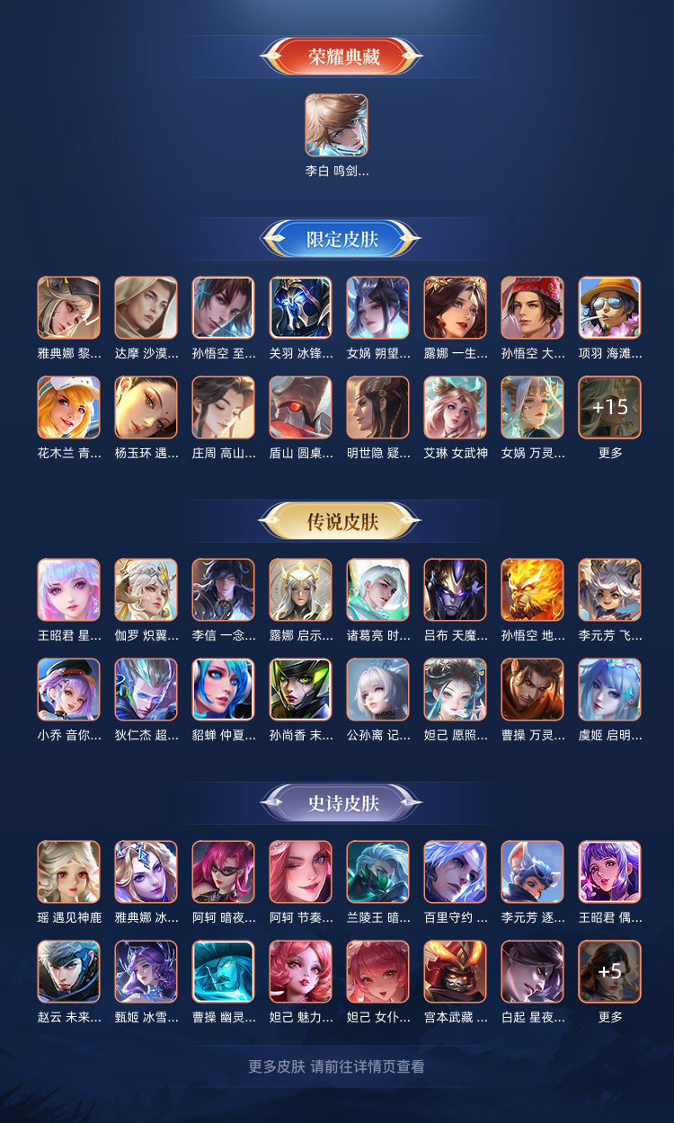 贵族八、历史传奇王者、露娜全皮肤、李白荣耀典藏、凯无双限定、多款传说、史诗限定!