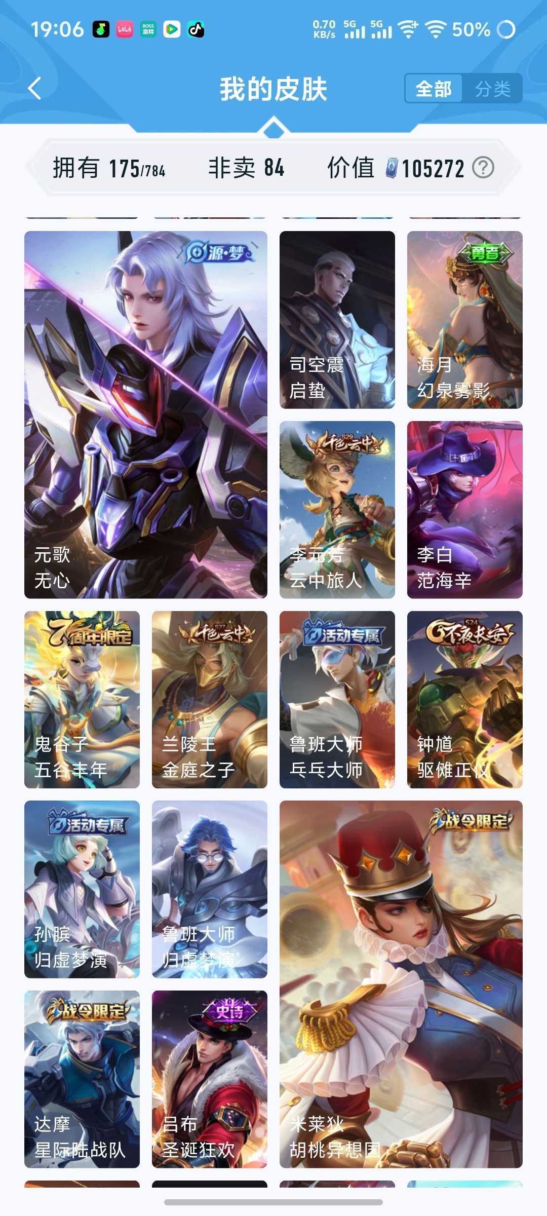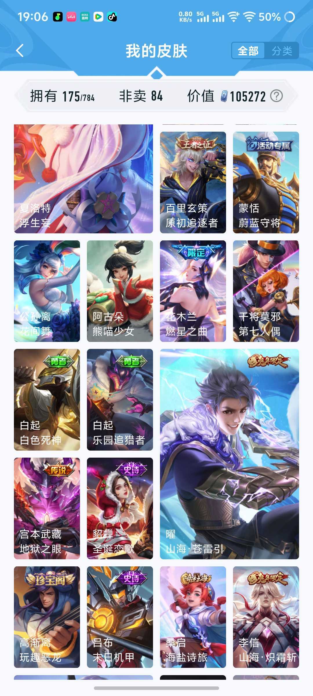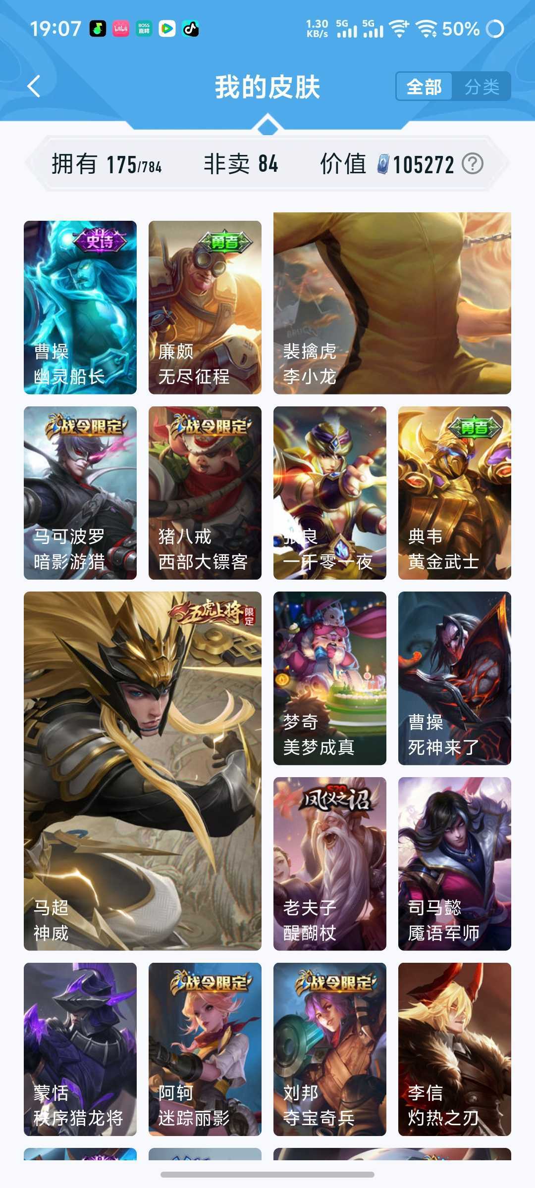 超绝武陵仙君/浮生妄/炽霜斩/地狱之眼/神威马超/太华/飞衡/魔法小厨娘/音你心动/燃星之曲/修罗