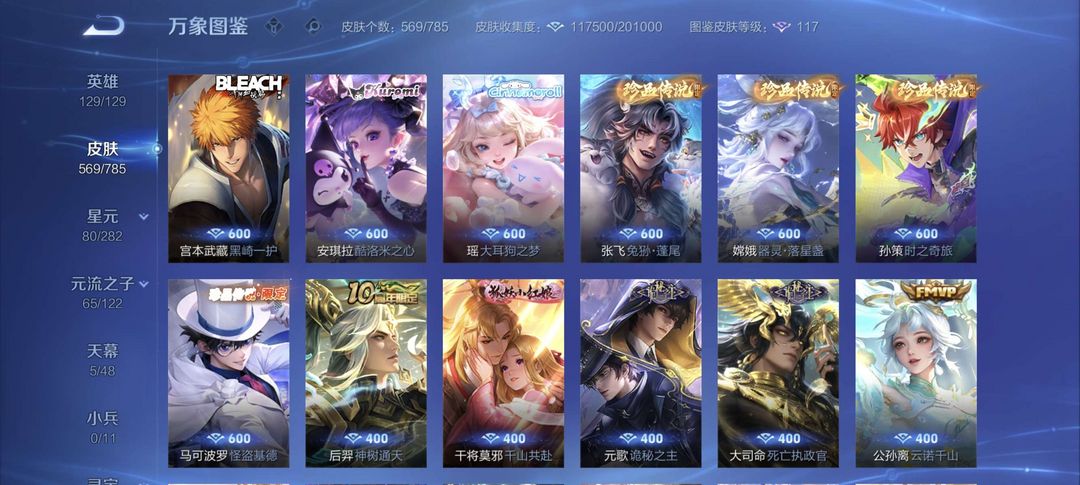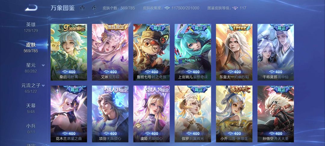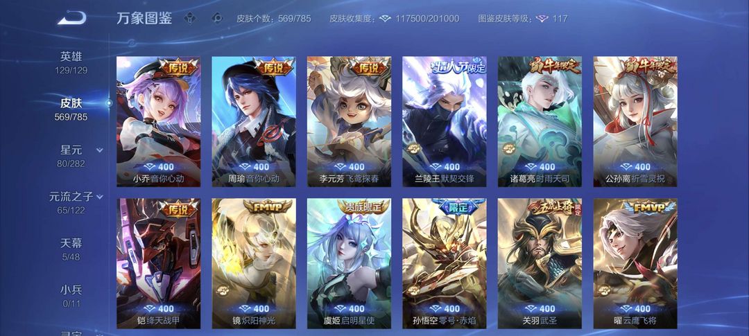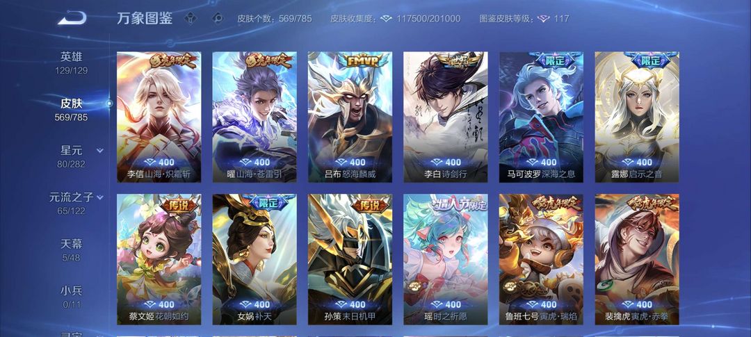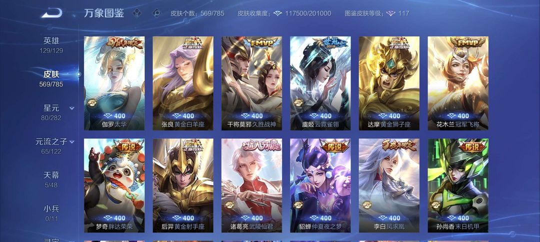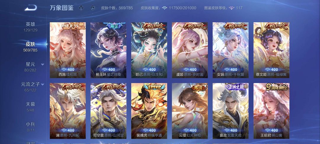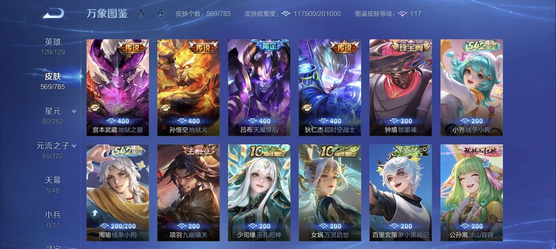 V10 565皮 8典藏 1珍品无双 4无双 7珍品传说 75传说 196史诗 1天幕 瑶全皮