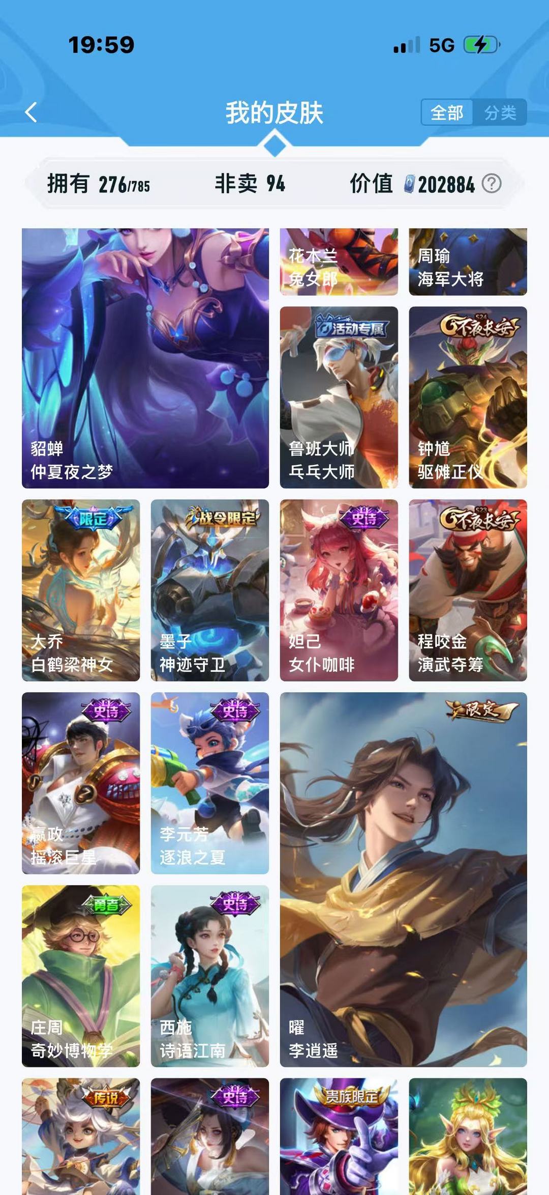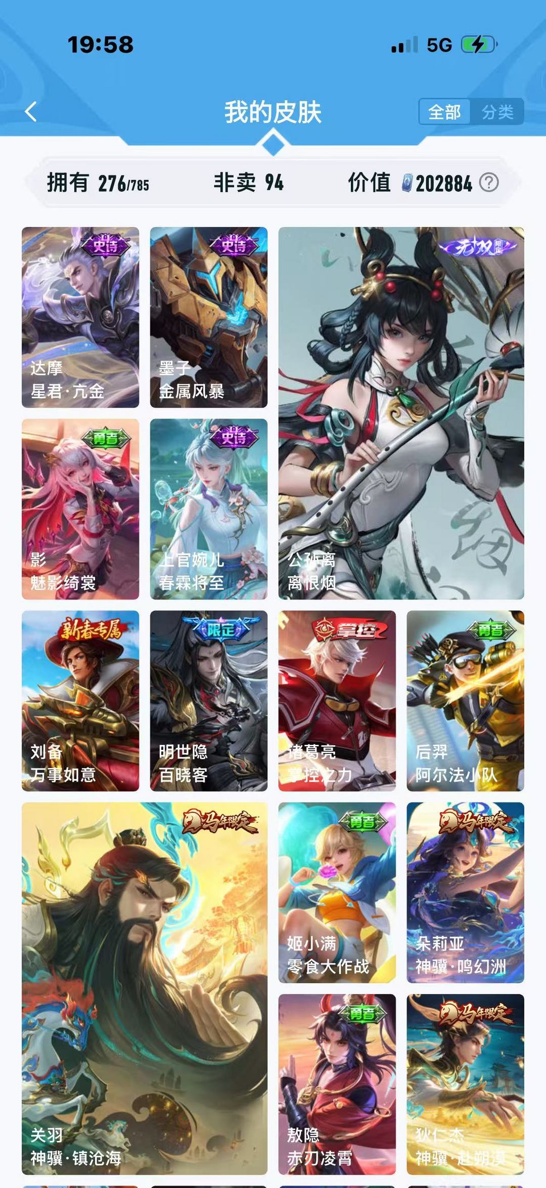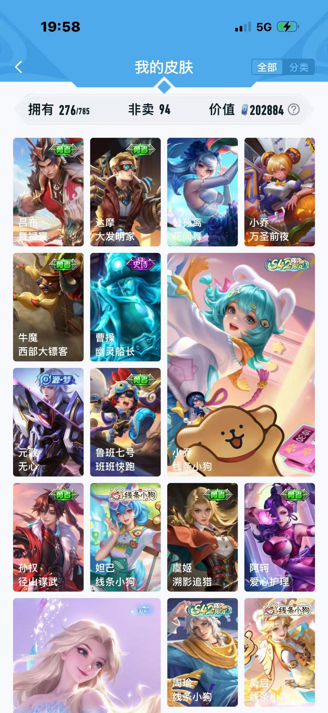 装备描述:线条小狗小兵伽罗典藏多个年限时雨天司朵丽亚关羽狄仁杰马年限定