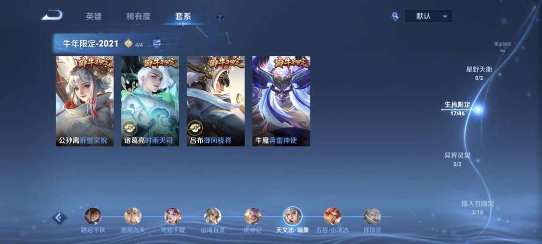 一典藏(韩信),马克怪盗基德,差一个全皮,兔年牛年生肖套全套,391个皮肤,多传说,可以排位