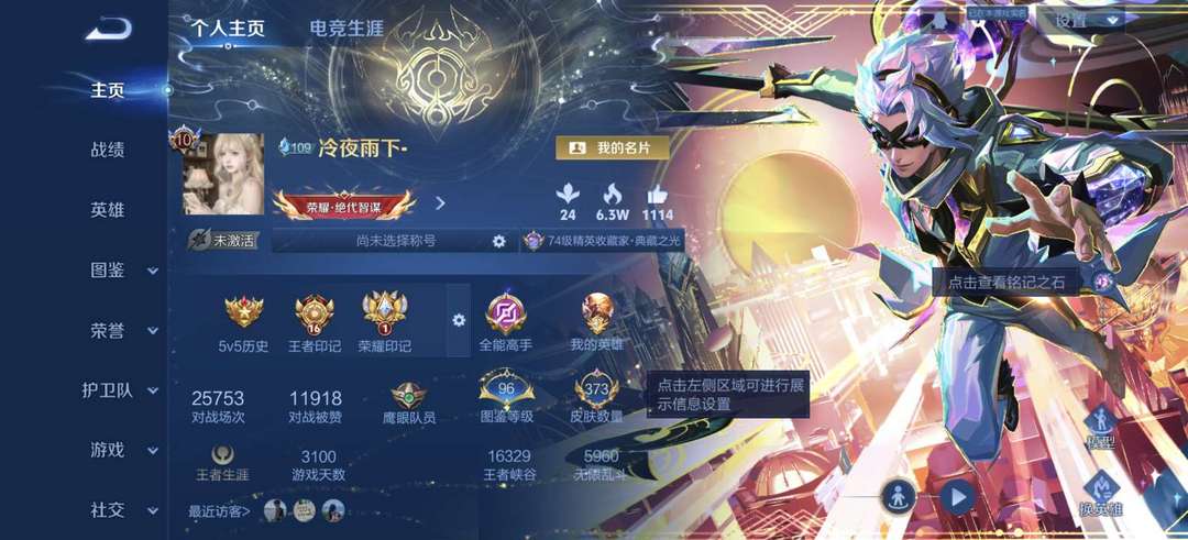 贵族10 不禁言7荣耀典藏 俩无双 皮肤数量372 英雄128,铭文150猴子至尊宝 玄策白虎志