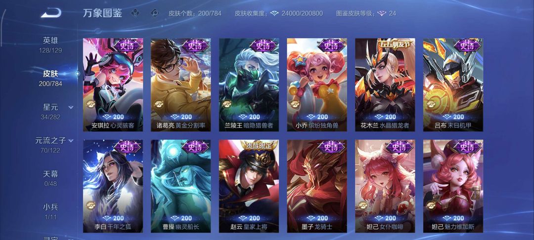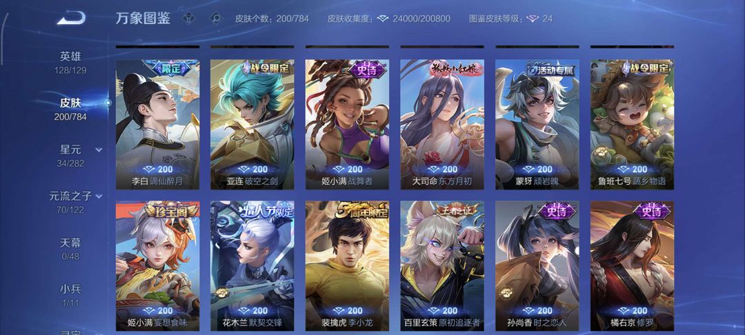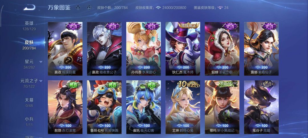 暴力炸可带妹上分★铭文全满★线条小狗小兵★年限皮肤★限定皮肤★历史省标源流