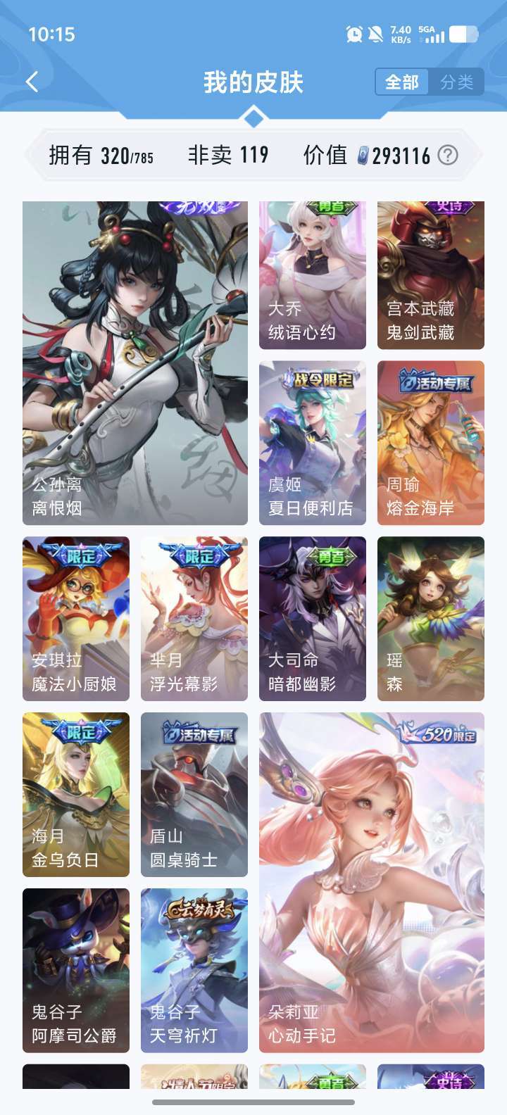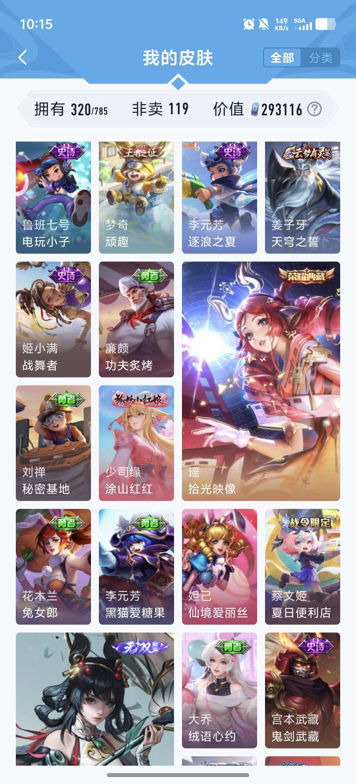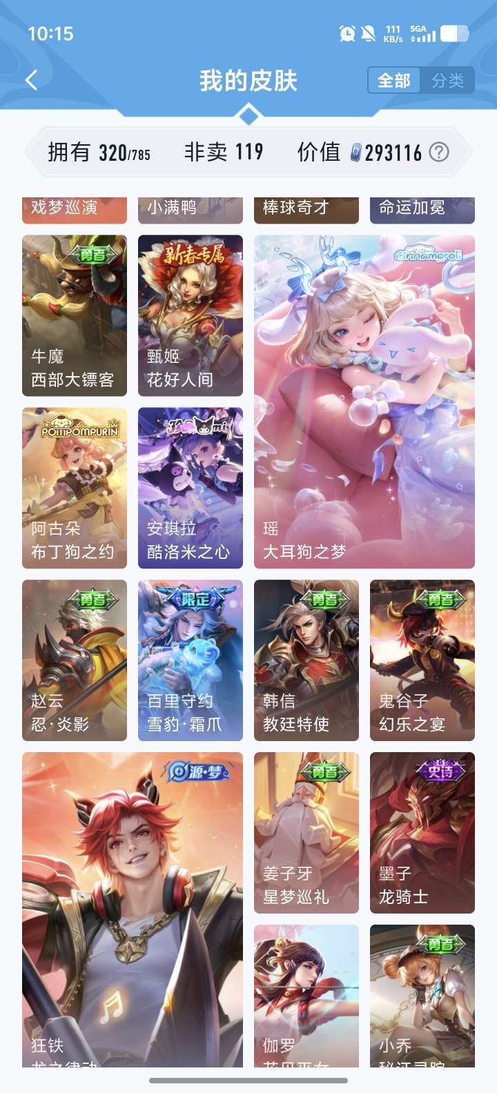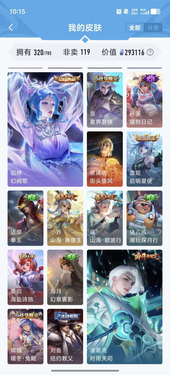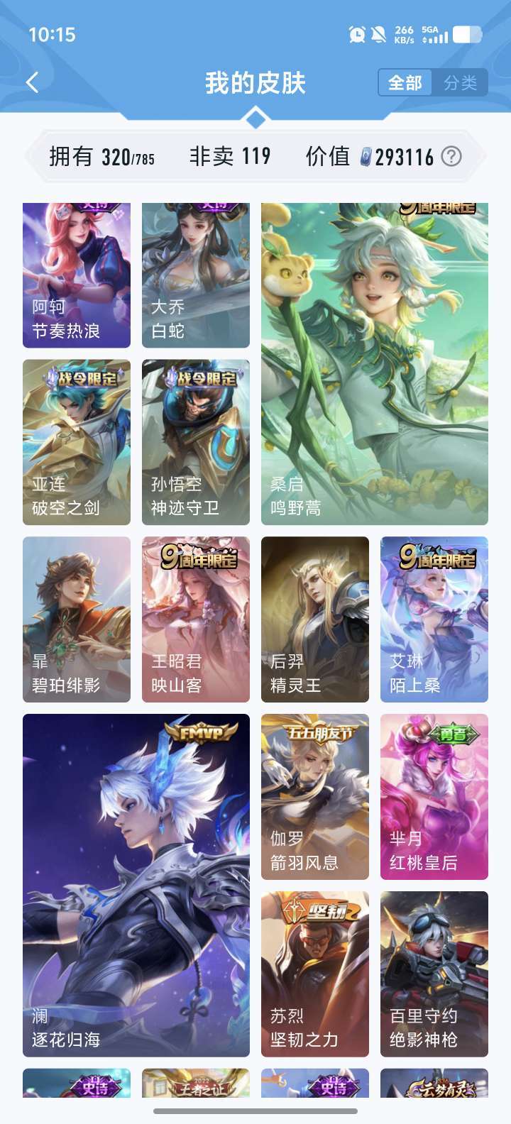 [V9 320皮]王者账号,多皮肤高段位,等你来战