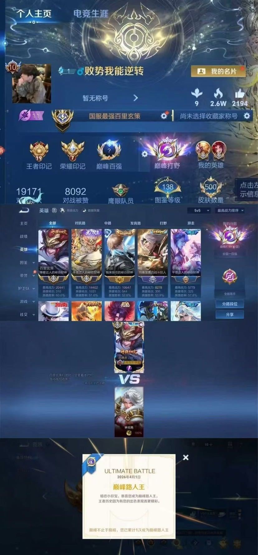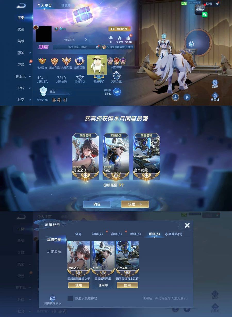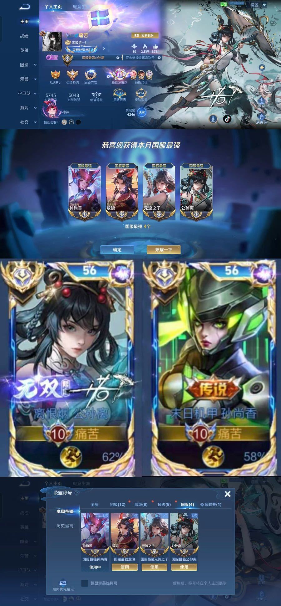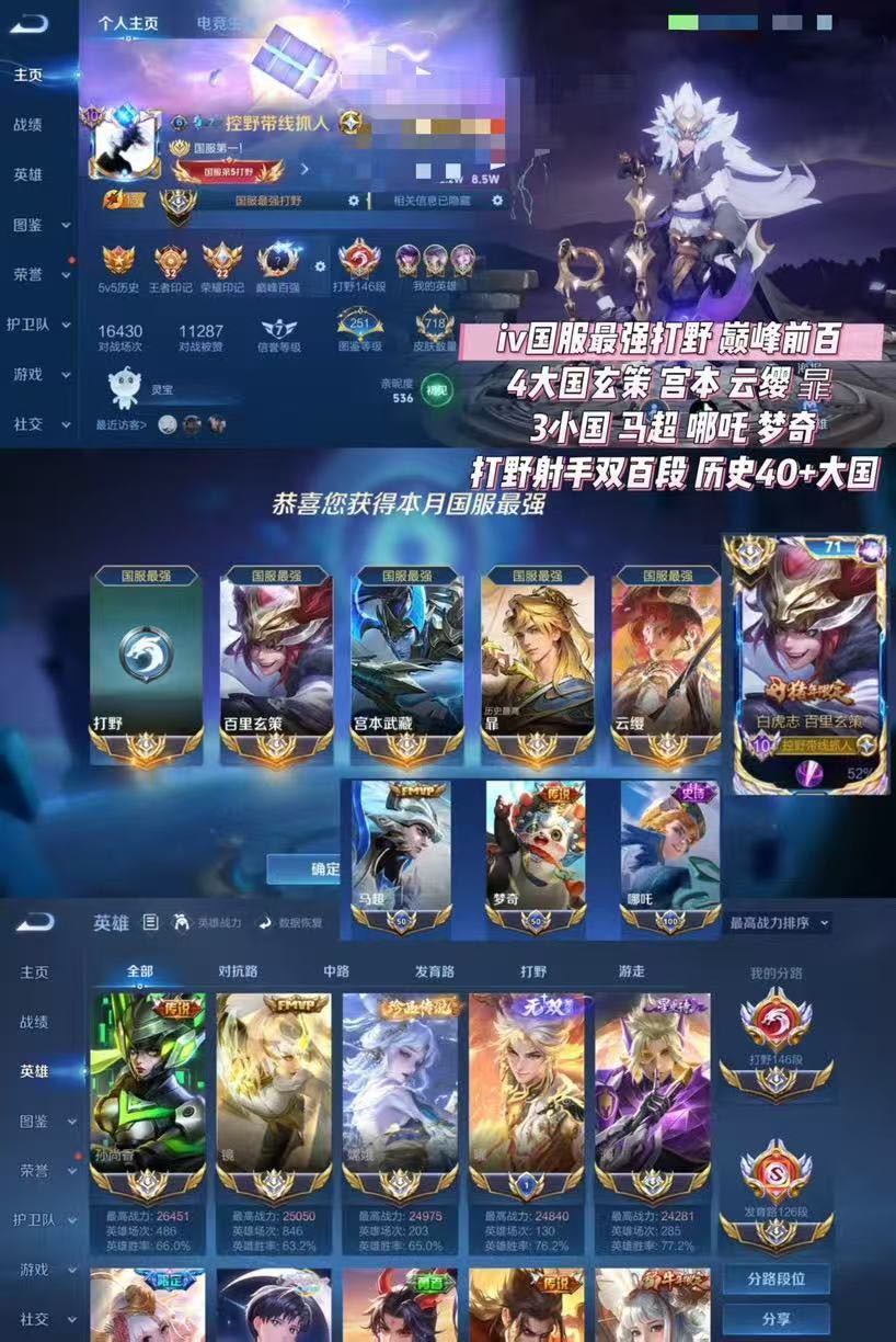 上号➕tuosu5四月在榜国服镜澜裴擒虎⚡️巅峰前十国服猴子香香阿离马可⚡️老虎马超木兰138段