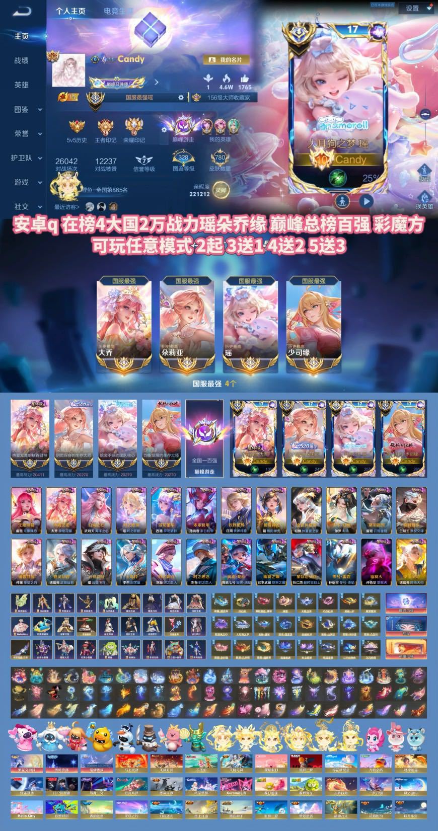 装备描述:老牌良心国服商户 信誉保证 号主v:tuosu5 号主v:tuosu5抖音快手搜索脱俗由于现在号全部需要刷异地辅助登陆大量热门在榜国服小国 大国 应有尽有双区都有什么英雄都可以来咨询 百段主播 logo 职业 所有账号禁止开挂 禁止巅峰赛 否则追究法律责任到底