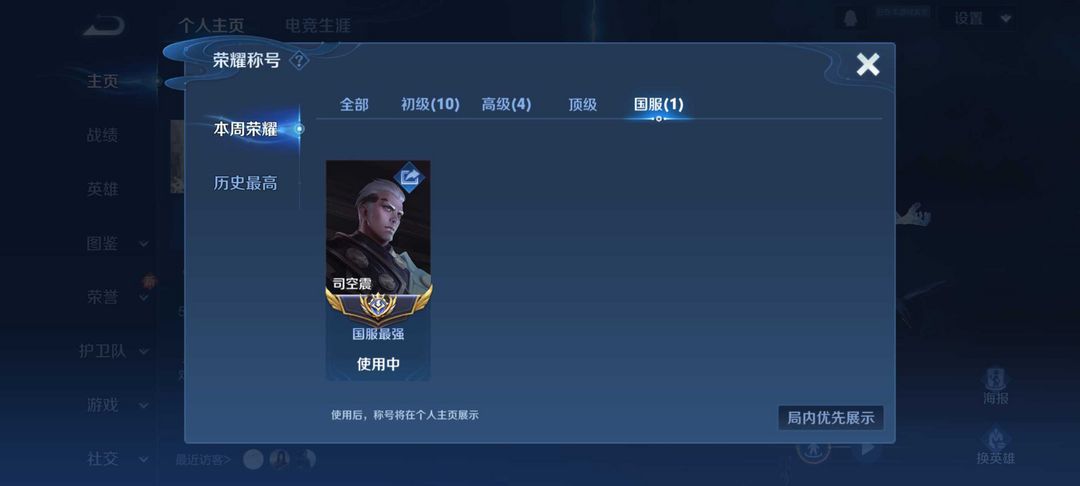 ⭐11月大国标国服司空震❤️在榜带标大国标司空震❤️可排位禁巅峰❤️