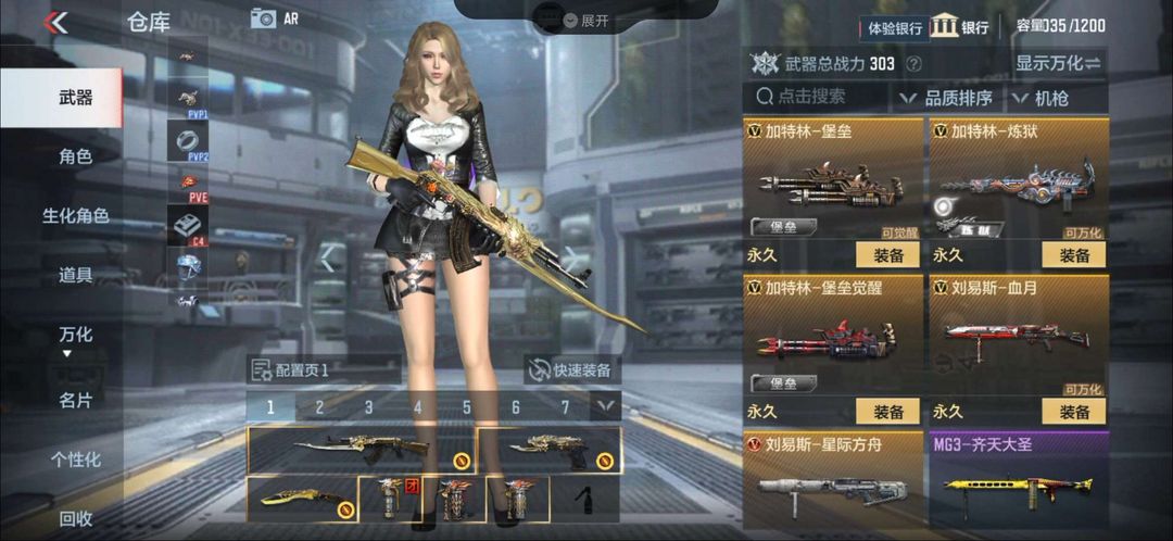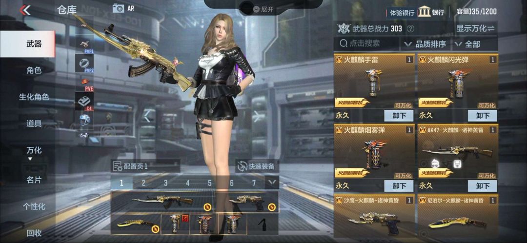装备描述:火麒麟套装,巴雷特-定军、手枪,擎天觉醒,加特林堡垒觉醒加特林炼狱角色樱葵