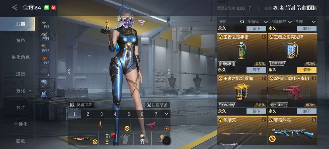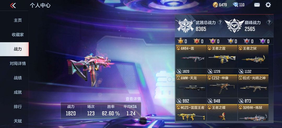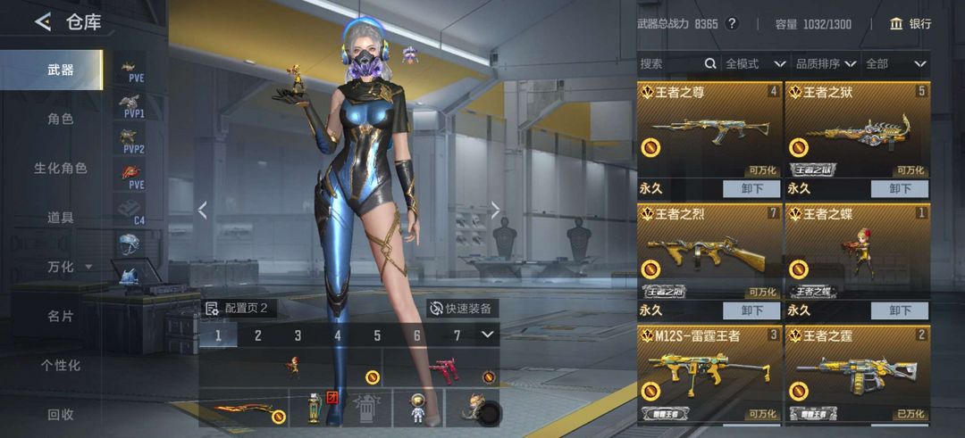 装备描述:王者之蝶,王者之霆,王者之狱,王者之烈,m12s-雷霆王者,王者之尊,王者之竞手雷,寒霜烈龙,盖,仲康等枪