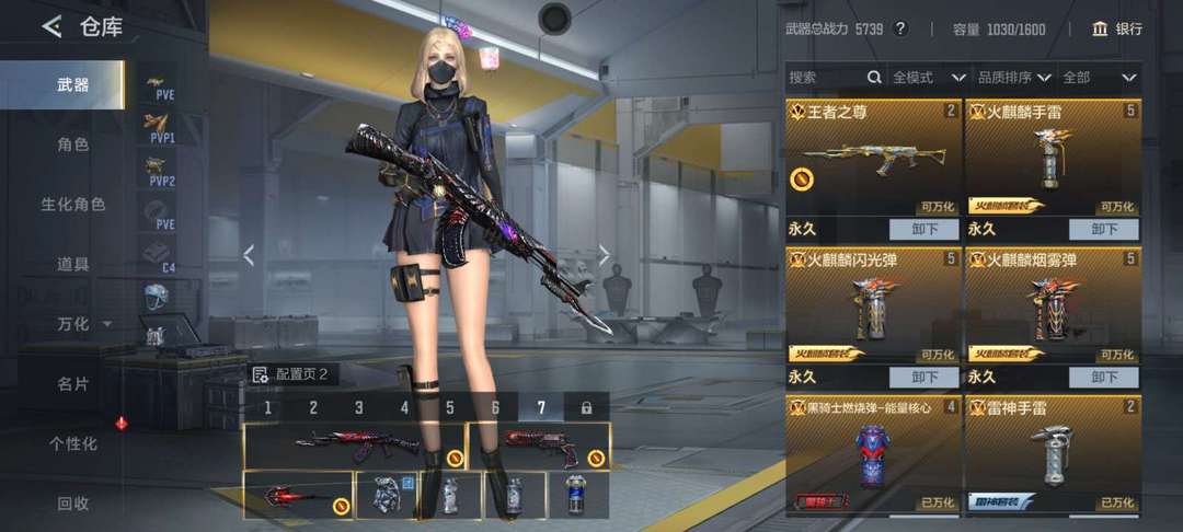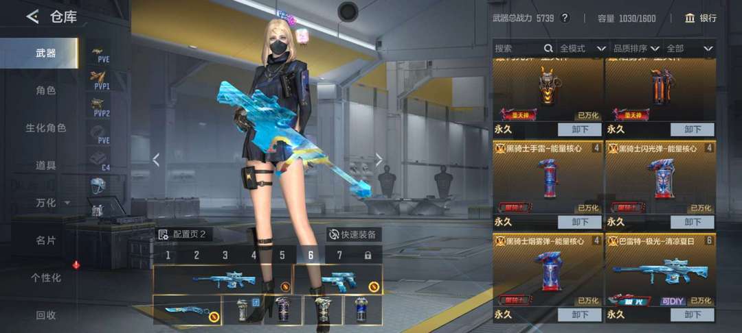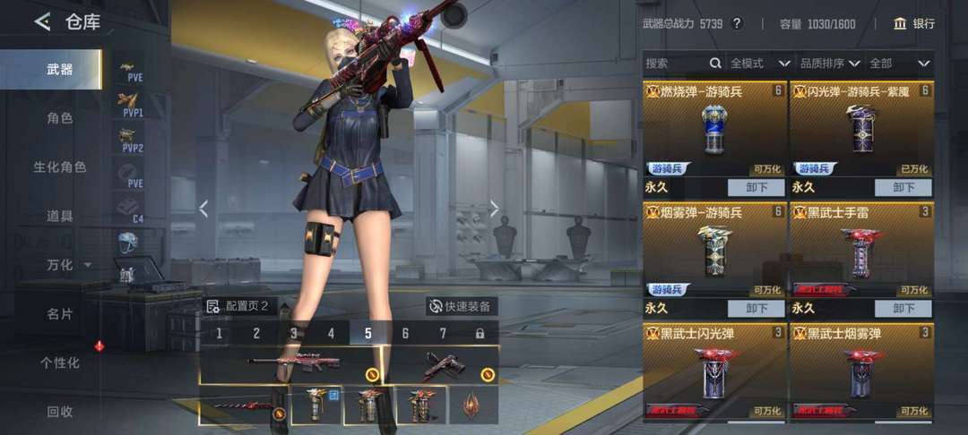 装备描述:黑武士套装,角色葵,炽天使-X,游骑兵投掷套装,极光套装,毁灭套装,无影套装。