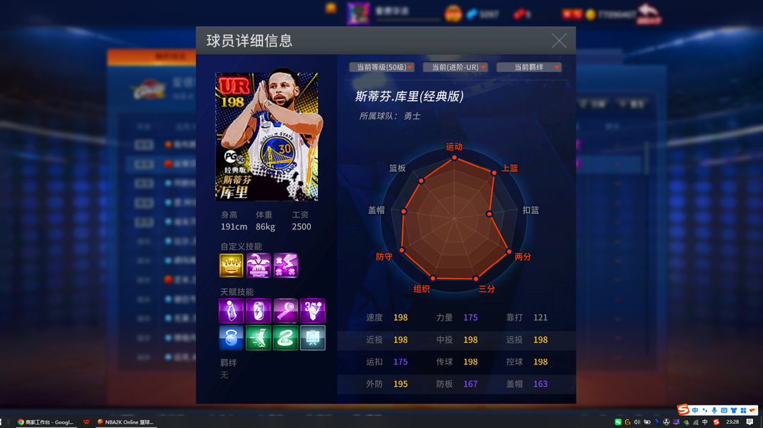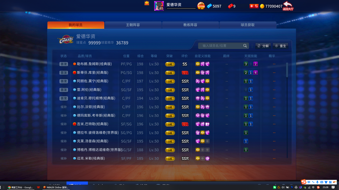 装备描述:UR库里SS詹姆斯|SSR莫宁雷阿伦汤普森沃顿|如需换球员可给号主留言|老板记得改键,游戏愉快!