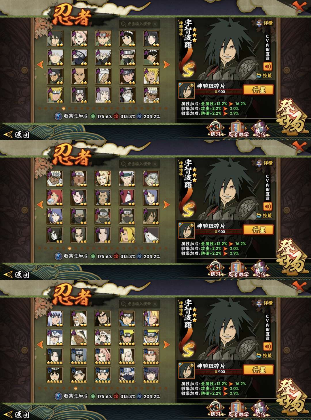神驹班全S忍♒57S 71A 374忍 3200W♒夏日鼬♒多奥义多时装♒永恒佐助♒三代风影
