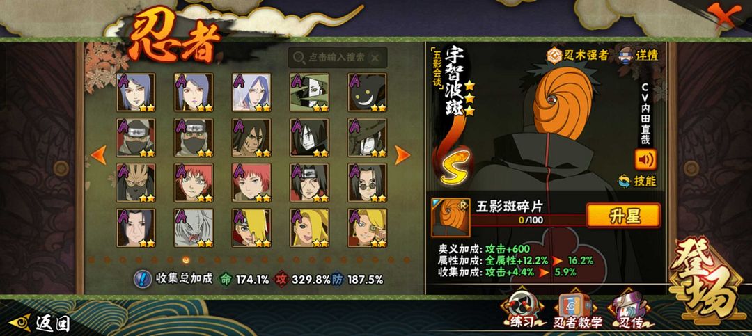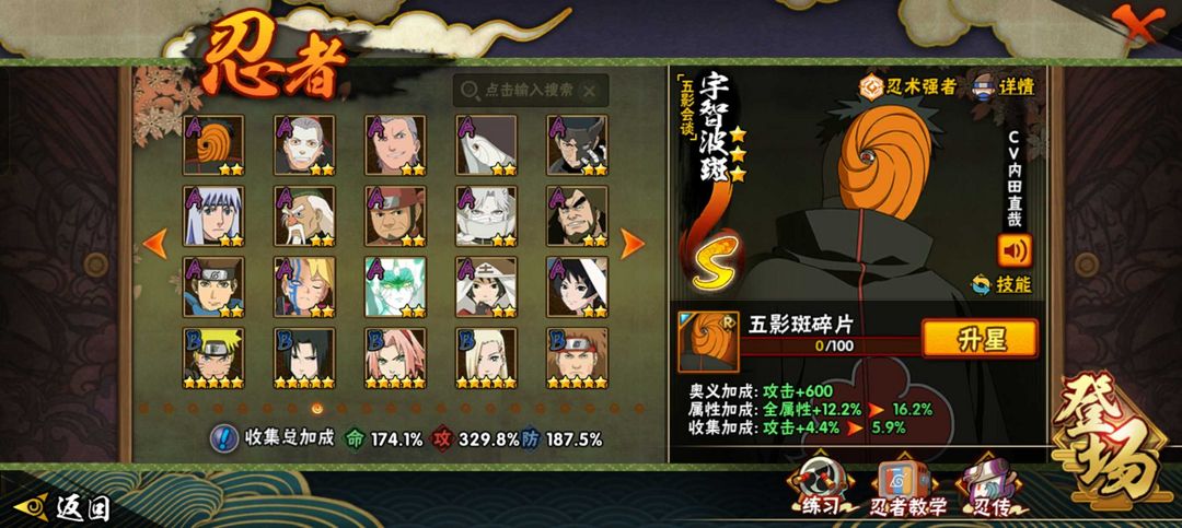 侠隐佐助☀️五影会谈斑☀️金身水门黑绝☀️410全忍者顶配全通灵☀️3500W战力轻松团本