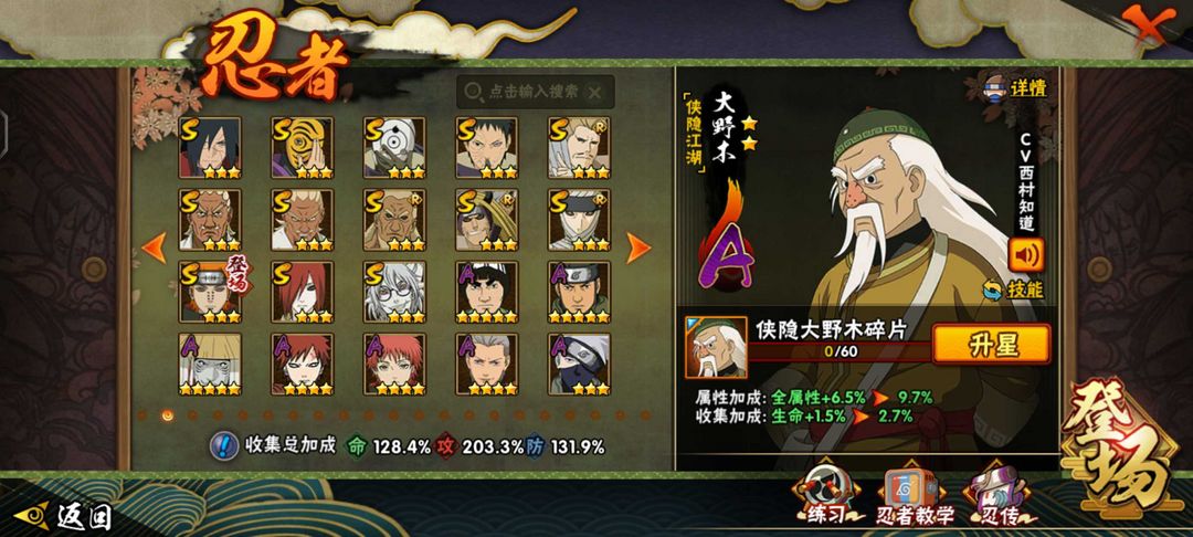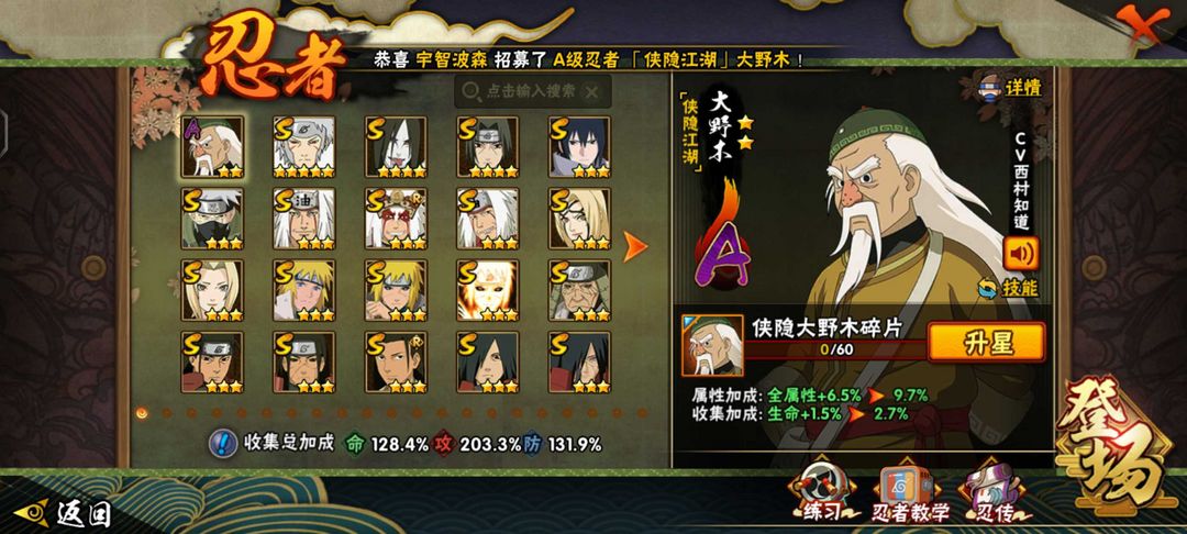 侠隐大野木v15充值5w+自来也♥五星二代♈忍战雷影♈创立柱间♈忍战带土♈秽土解斑♈永恒佐助♈天道超