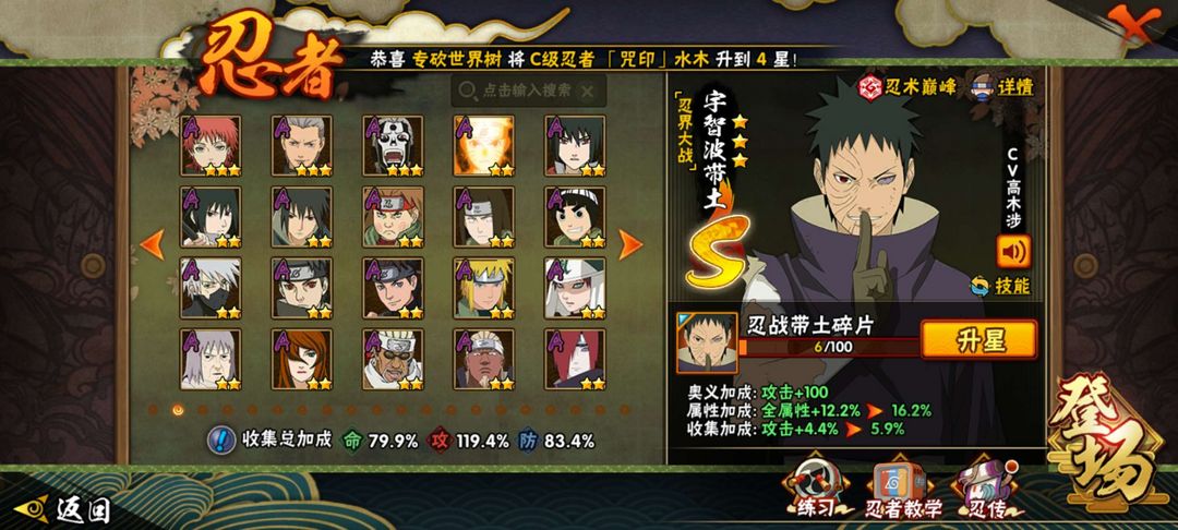 装备描述:破面,黄猿,忍樱,紫狗,忍卡,秽土鼬,秽土柱间,创立斑,漂泊六道