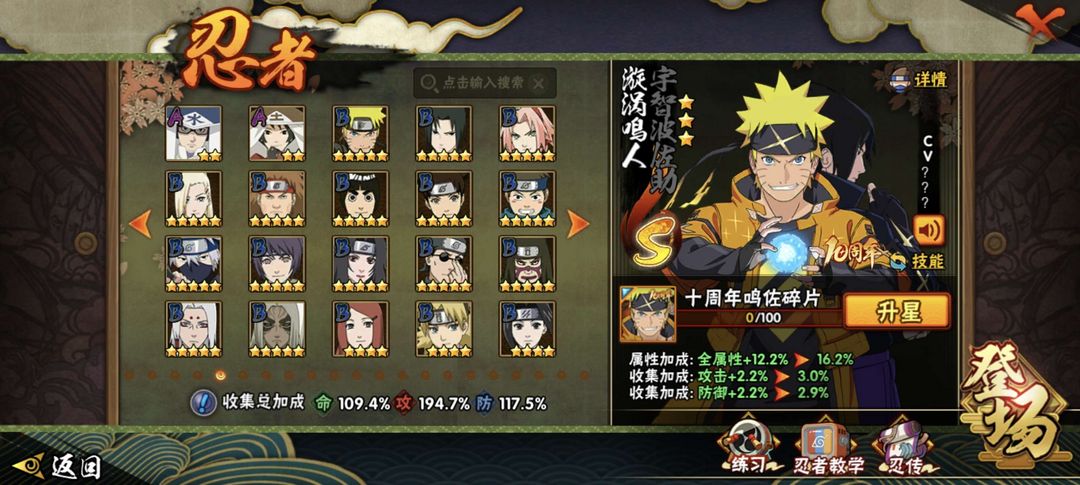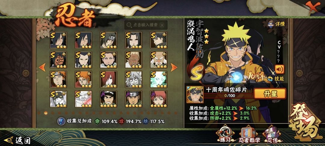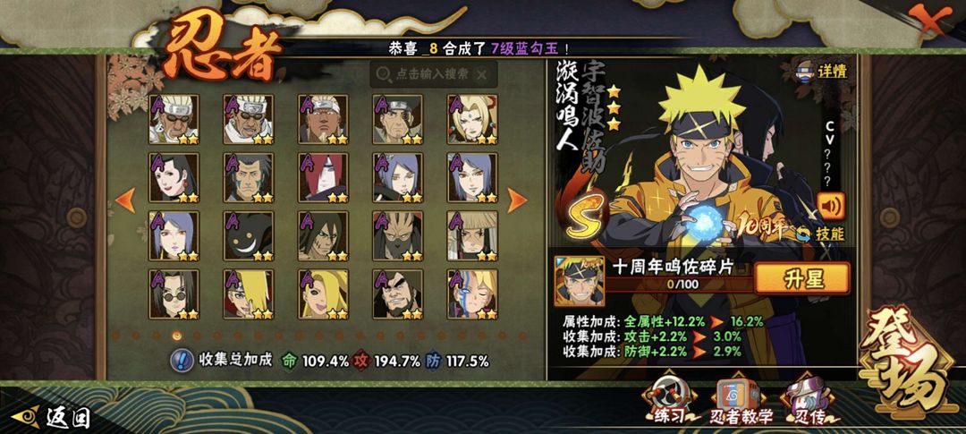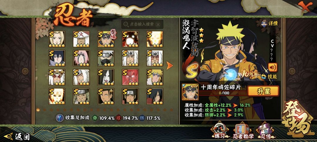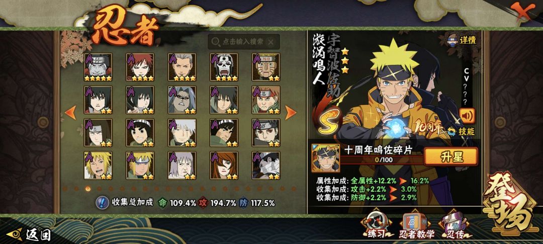 十周年鸣佐☆九喇嘛水门☆妖怪纲手☆六尾鸣人☆黑绝☆天道超☆36s☆45a☆1760w