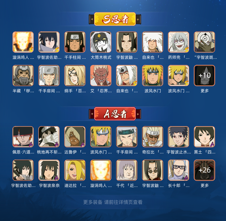 装备描述:24s传说自来也须佐卡卡西大筒木桃式秽土解斑漂泊佩恩死门凯漂泊扉间、秽土鼬丨白面具秽土水门三代泳南