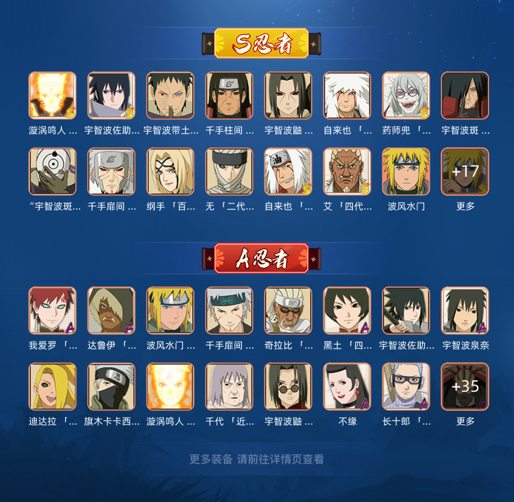 装备描述:31S、传说自来也须佐卡卡西秽土解斑丨新春我爱罗卑留乎九喇嘛忍战带土漂泊扉间秽土鼬白面具秽土扉间四尾