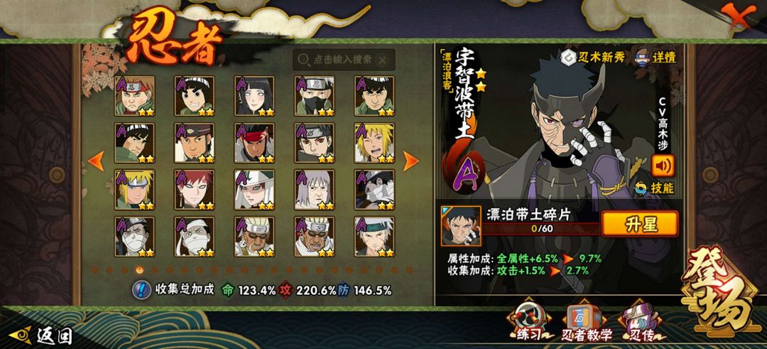 装备描述:彦祖们可以看看,多忍法帖忍者,神驹忍者都有,漂泊带土带皮肤,号上多高强度高招跟点券忍者,漂泊忍者几乎全收集