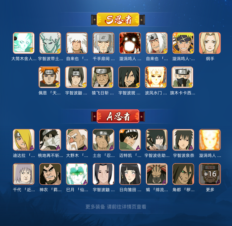 装备描述:大筒木舍人✨六尾鸣人✨神驹斑✨五影斑✨卡卡西忍界大战✨阴水门✨传说自来也✨十尾带土