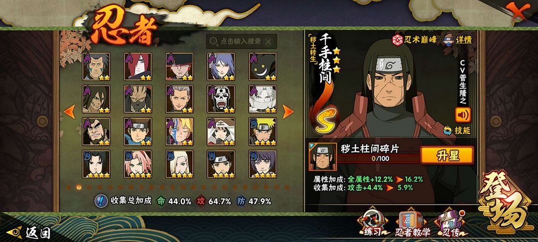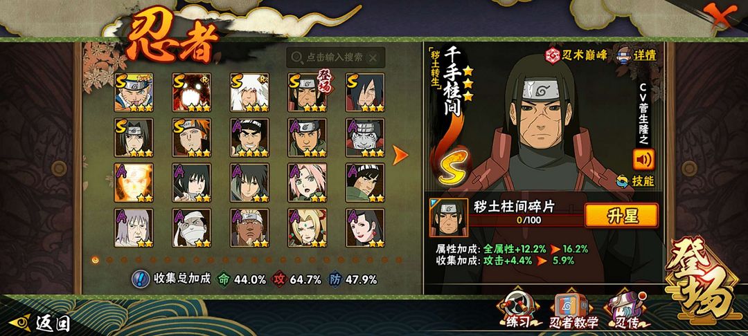 秽土柱间,暴怒六尾鸣人,解斑,黑绝,漂泊再不斩,漂泊佩恩,秽土角都,青年艾,神农,卑留乎,桃博,熊猫