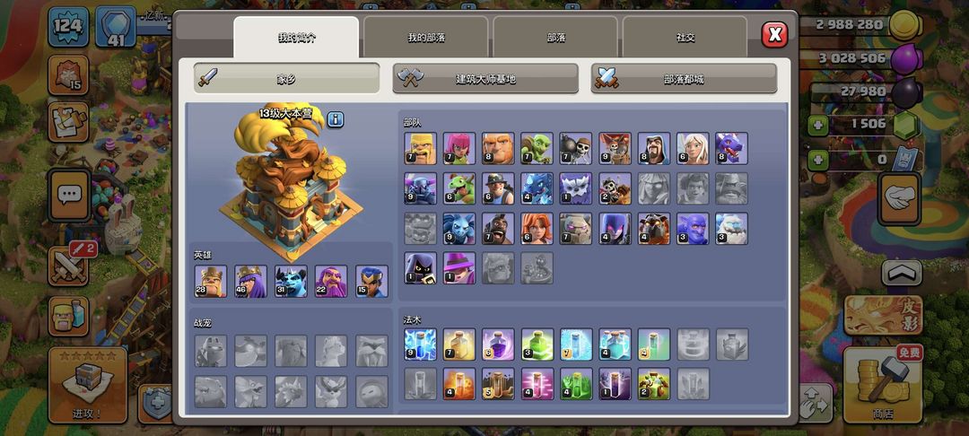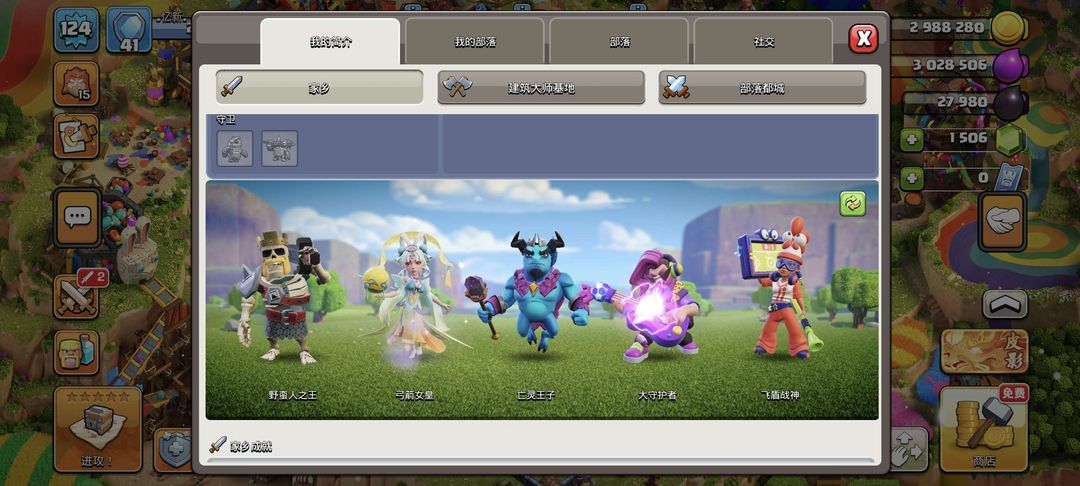 13本/41繁荣度/25级部落/英雄皮肤图片上有
