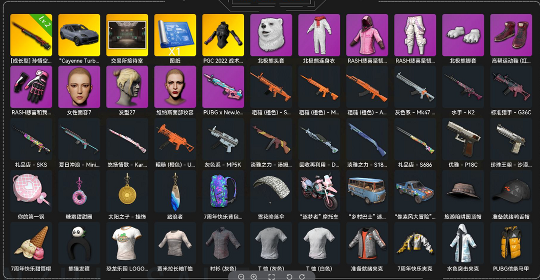 保时捷跑车√悟空M24√粉梦长眠M24√蒸汽计量表98K√丸子头套装√柏林鞋√悲喜套红面巾√