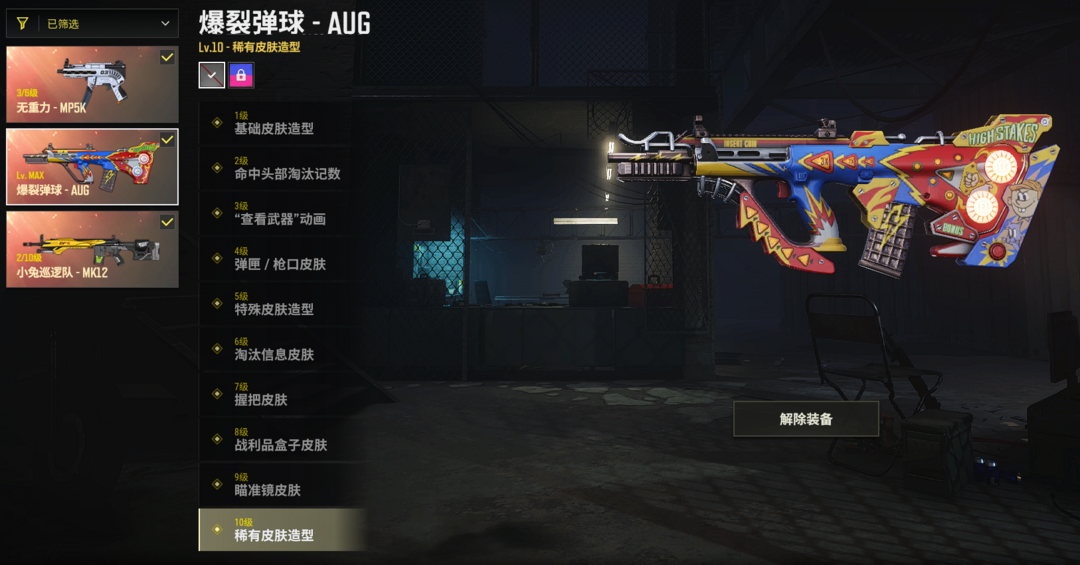 ⑩级爆裂AUG✅③级无重力MP5K✅小兔MK12✅白虎锅✅白战神白运动黑鬼金面
