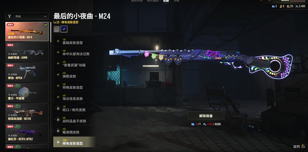 二级密码123456✅⑥级小夜曲M24✅异色M24✅渗透AKM✅毒液M762✅铃儿响叮当98K✅群雄