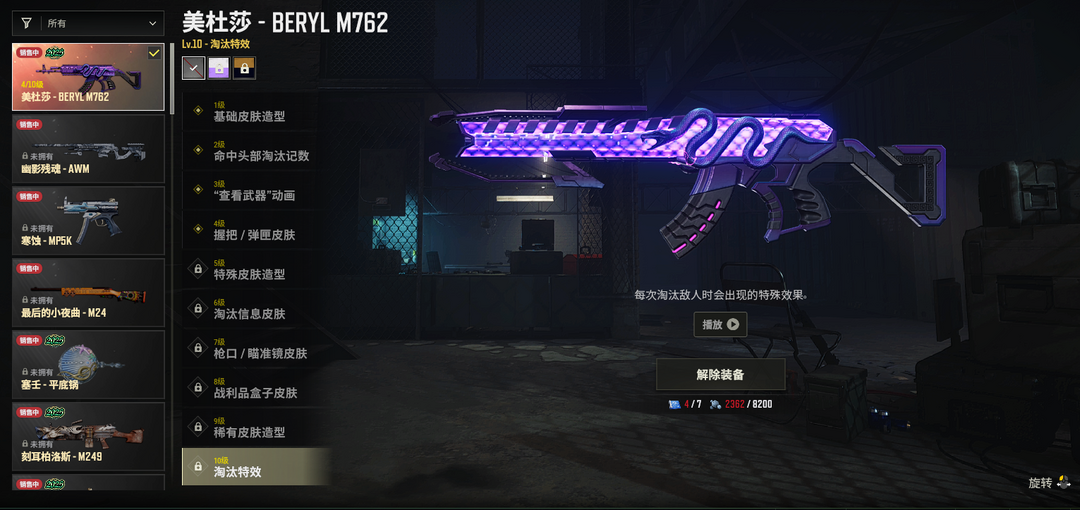 ④级美杜莎M762✅孙悟空AKM✅沙悟净AUG✅唐三藏SLR✅镀金SKS✅金色落叶98K✅幽冥之握M