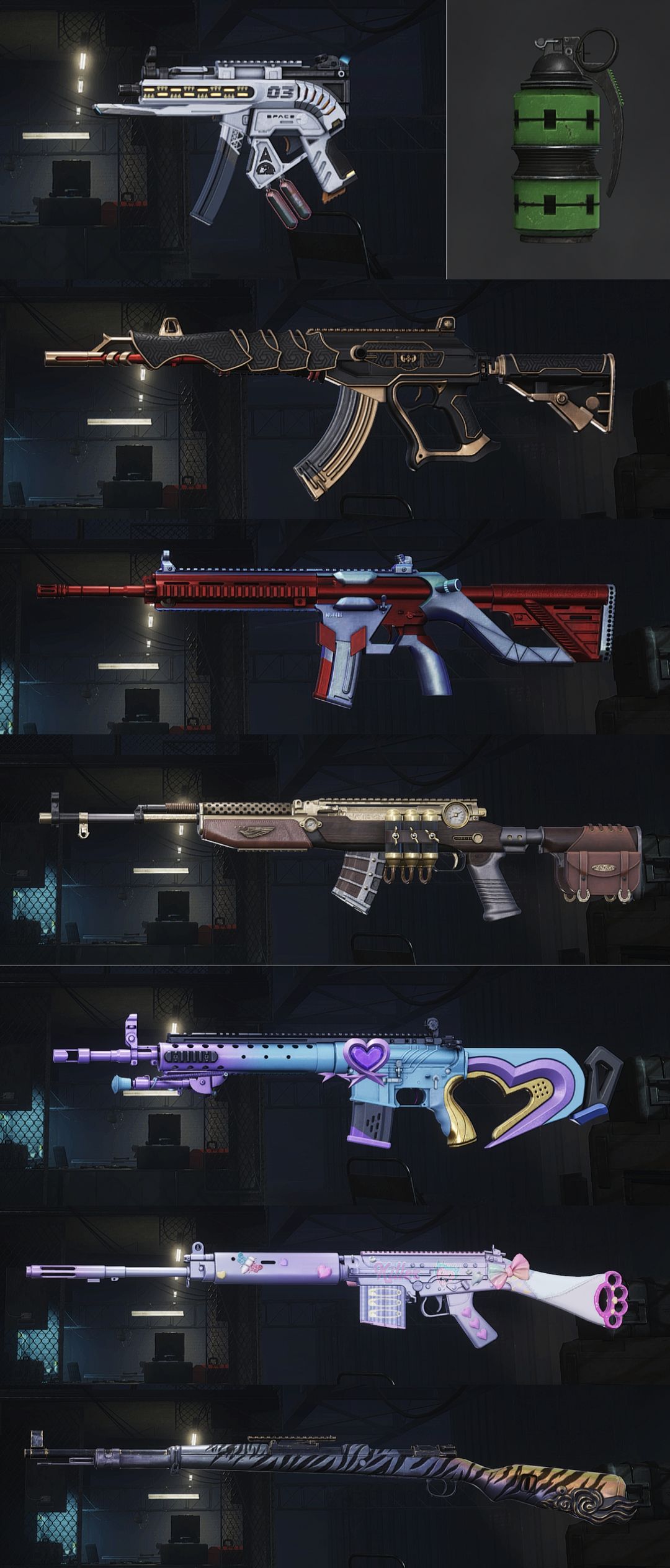 装备描述:【十一神器】保时捷卡宴/满级无重力MP5K/美杜莎M762/妖魔之触ACE32/无信号M416/冰域之主GROZA/时光加农SKS/魔咒之力MK12/危险玩偶屋SLR/猛虎猎手98K/翡翠色烟雾弹/紫色烟枪/极速金杜卡迪/兰博基尼奢华版SUV/DANIELLE女团/绿东/白战神/滑雪镜/滑雪帽/拉风龙长裤/白熊套装等多款稀有服装