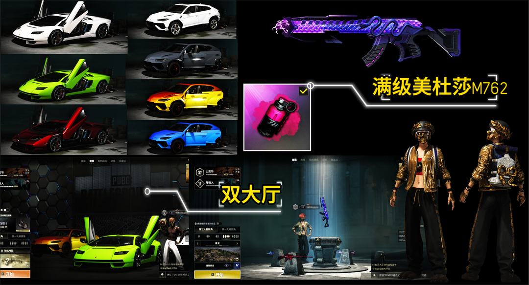 满兰博双大厅✨拉风龙大礼包✨瀚娜✨满级美杜莎M762✨刻耳柏洛斯M249✨虚空使者M416✨✨阿狸套