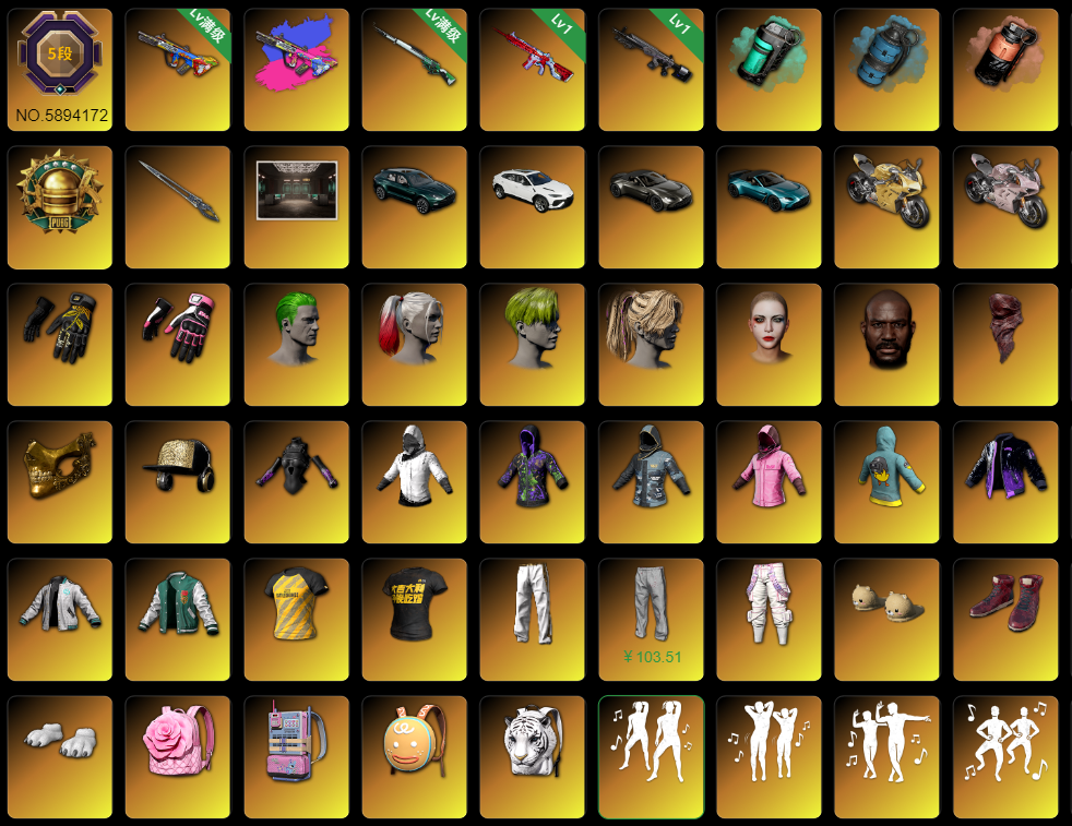 金标杜卡迪马丁兰博✅8神器⑩级异色爆裂aug✅⑩级宇宙之力98K✅绿头小丑女✅金叶子白运动✅HeyM