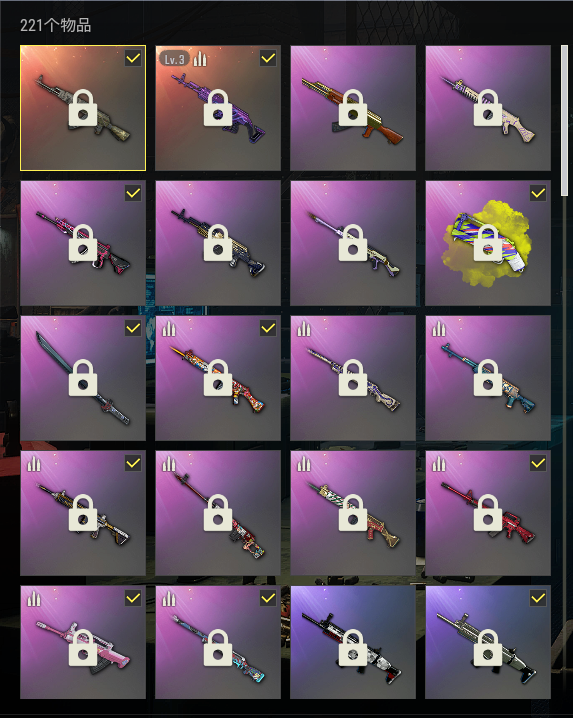 装备描述:③级美杜莎绷带AK橙狂怒之烟雾✨满级大金标✨粉战神悲喜柏林套渔夫帽黑鬼白熊✨小运动套金面纹身套可排位