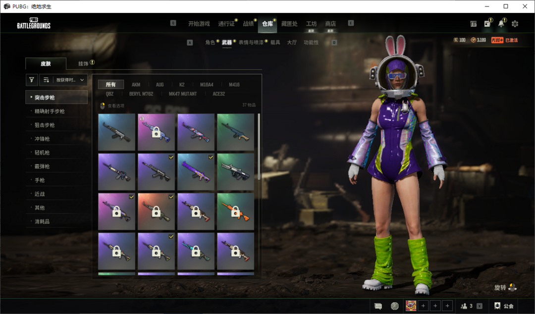 装备描述:究极保时捷帕拉梅拉四门跑车✨沙悟净AUG✨美杜莎98K✨镀金AWM✨分秒必争QBZ✨兔兔也朋克套✨星际小兔套✨战术科技套✨星魂猛虎套✨防风夹克✨
