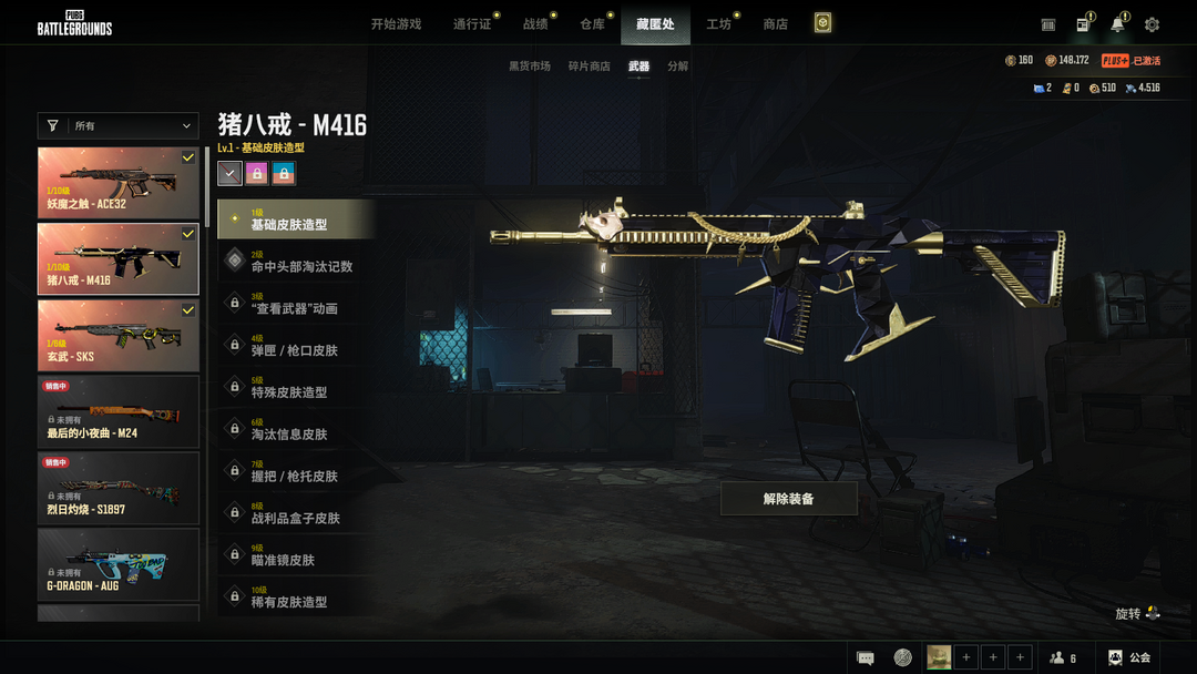 可排位二级密码667788✅4段成长型妖魔之触ACE猪八戒M416玄武SKS卡崔娜✅悲喜耳机渔夫帽✅