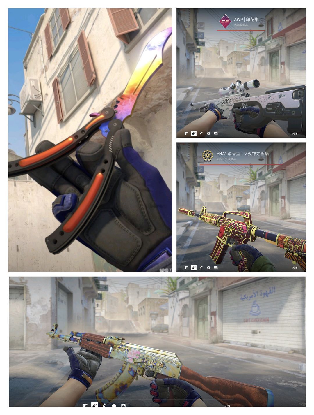 只可5e✨顶级冰火渐变蝴蝶刀✨渐变之色手套✨伪黄金藤曼淬火AK✨印花集套✨女武神✨探员