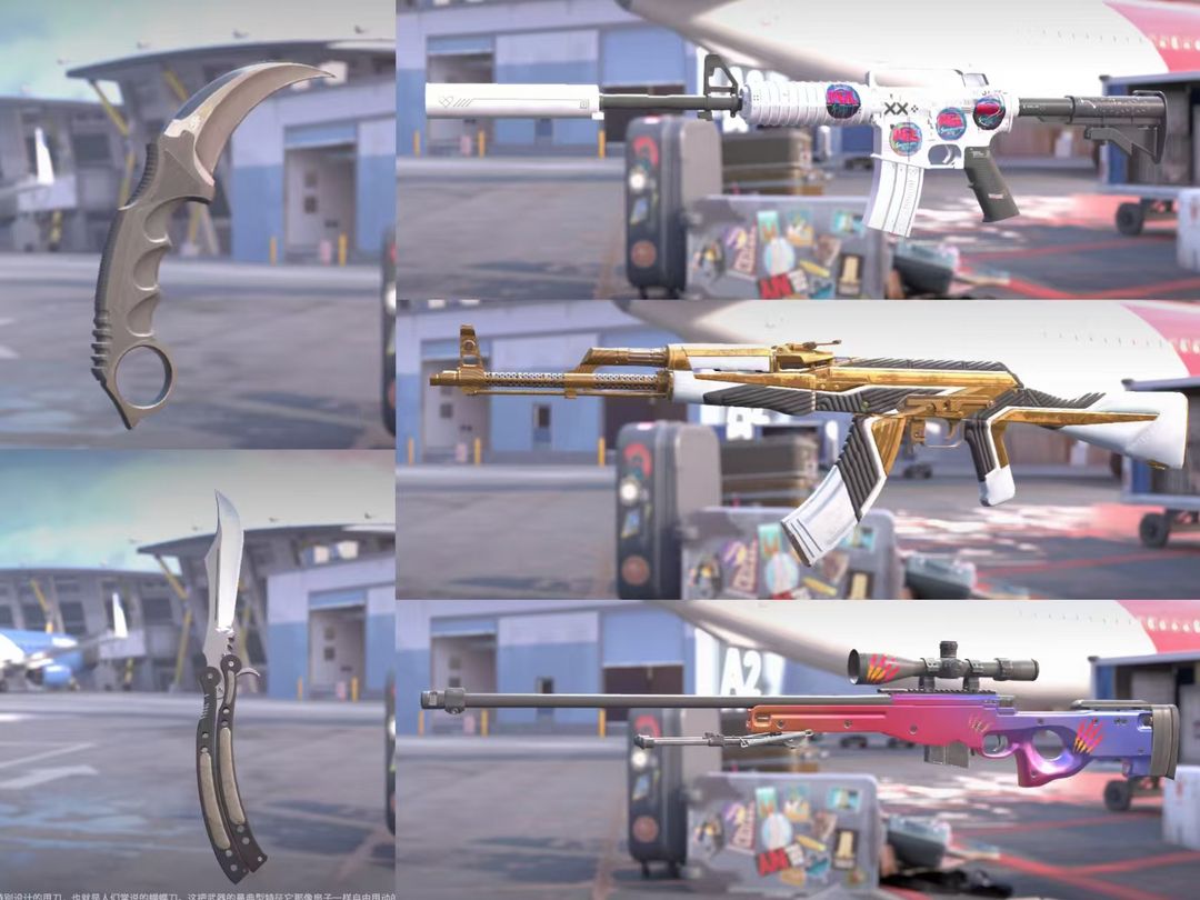 完美✔5E✔原皮蝴蝶+爪子双刀❤️王蛇手套❤️流金王朝ak❤️渐变之色awp⭐印花集全套