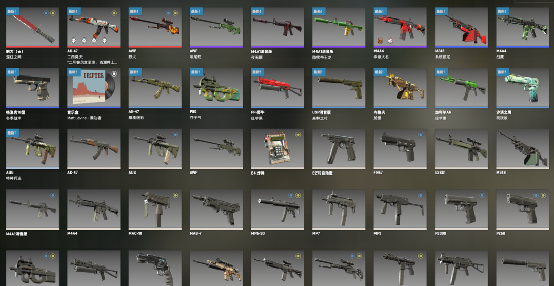 可5E完美新手⭐刺刀深红之网⭐AWP野火AK二西莫夫响尾蛇夜无眠隐伏帝王龙杀意大名战鹰音盒