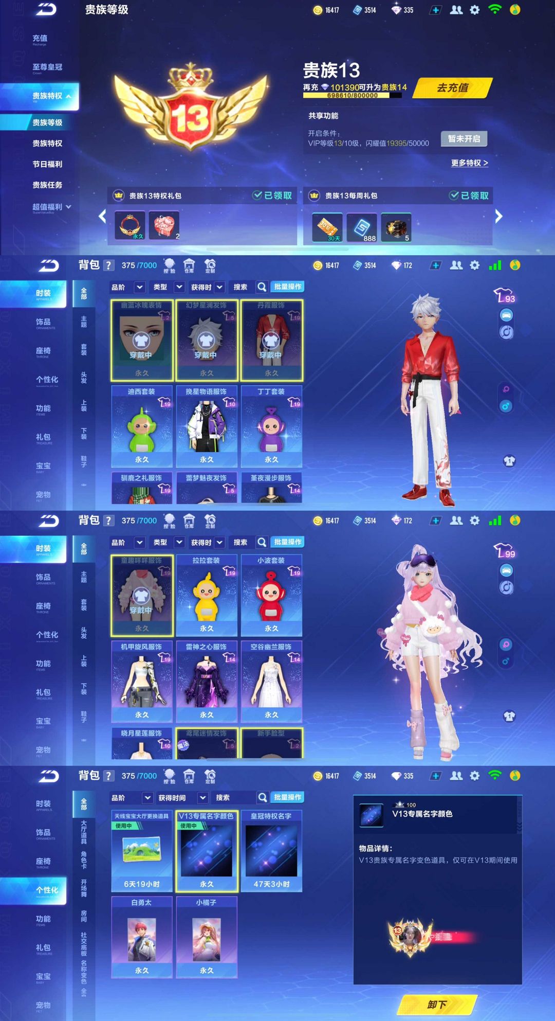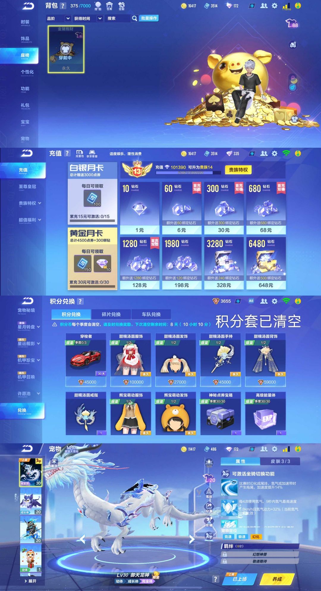 装备描述:【V13哈雷特炽勇舰长全套/骑宠御天龙神】魅力榜75万魅力值/金猪抱财/天幕大喷车轮按键/专属变色名/黑猫警长/白猫班长/天线宝宝/积分商城套装全拥有/各种套装/龙神 账号价值过高,已备案,严禁使用外挂!!封号禁言必定追究法律责任!!网络定位追踪,跟警察打交道多年,有的是办法找到你,不要以身试法,切勿挑战底线!! 恶意撤单白嫖店铺秒拉黑!