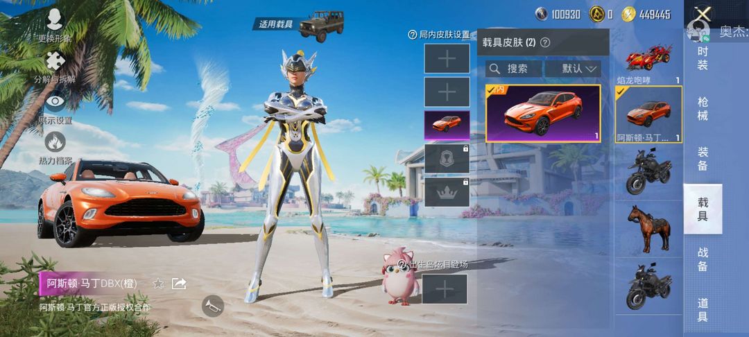 【特效枪:4 粉装:6 载具:2】阿斯顿·马丁DBX(橙)♉神秘黑猫降落伞♉心之恋语降落伞♉