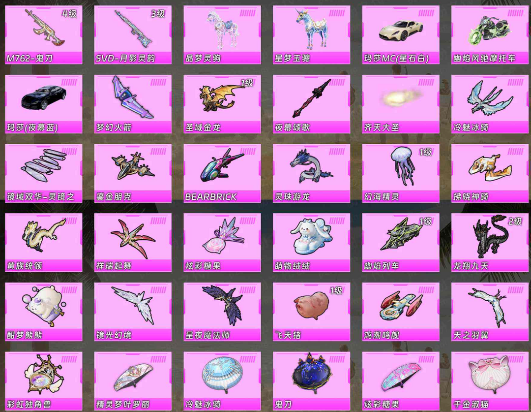 【红装:2 粉装:19 粉枪:16 载具:5】4级红木乃伊图卡盟♥红塞卢姆♥梦幻火箭♥紫粉蓝螳螂♥