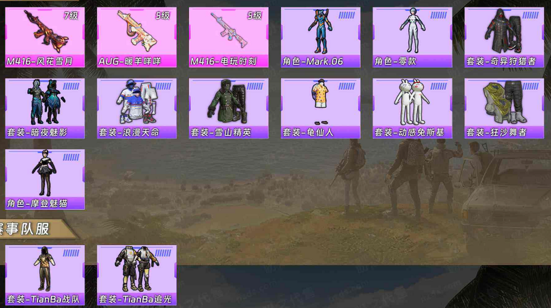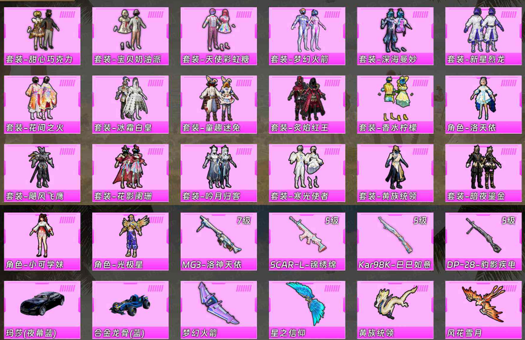 【粉装:20 粉枪:7 载具:2】梦幻火箭♥蓝螳螂♥奇异♥摩登猫♥洛天依♥宝贝奶油派♥天使彩虹糖♥