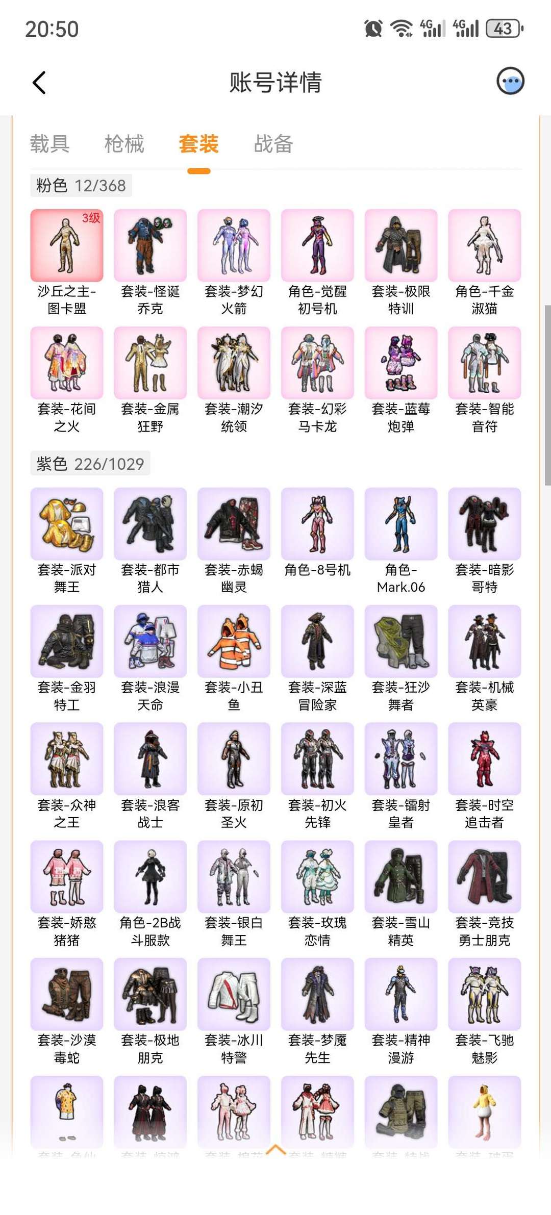 限制: 租号2次及以上 | 撤单率<60%才可租用此帐号装备描述:极品素材/3级图卡盟/小丑/紫螳螂/火箭少女/极限特训/DKG战队服 /金鞋都市赤蝎/小丑鱼、粉熊包