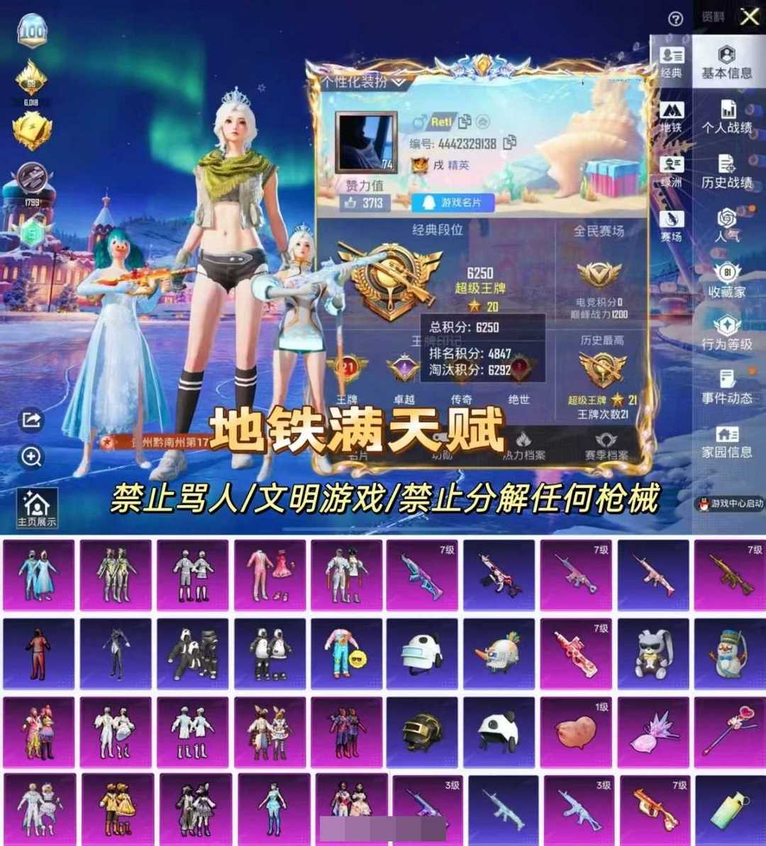 限制: 租号10次及以上 |装备描述:禁止利用账号进行开挂、使用辅助违规软件诈骗等违规操作。喜欢本账号请点 ☆收藏☆ 方便下次租用,谢谢光临惠顾!禁止利用账号进行开挂、使用辅助违规软件诈骗等违规操作。